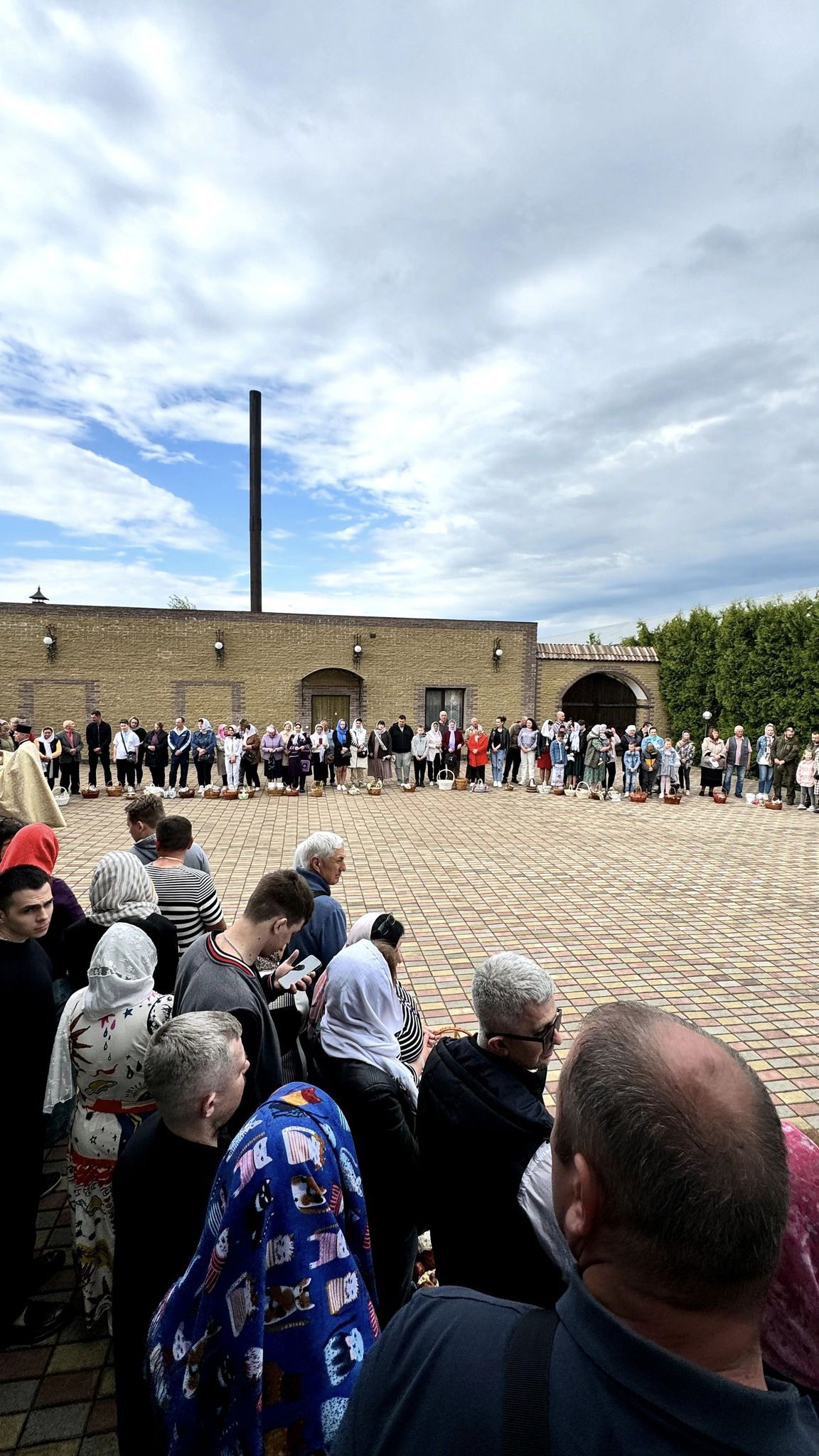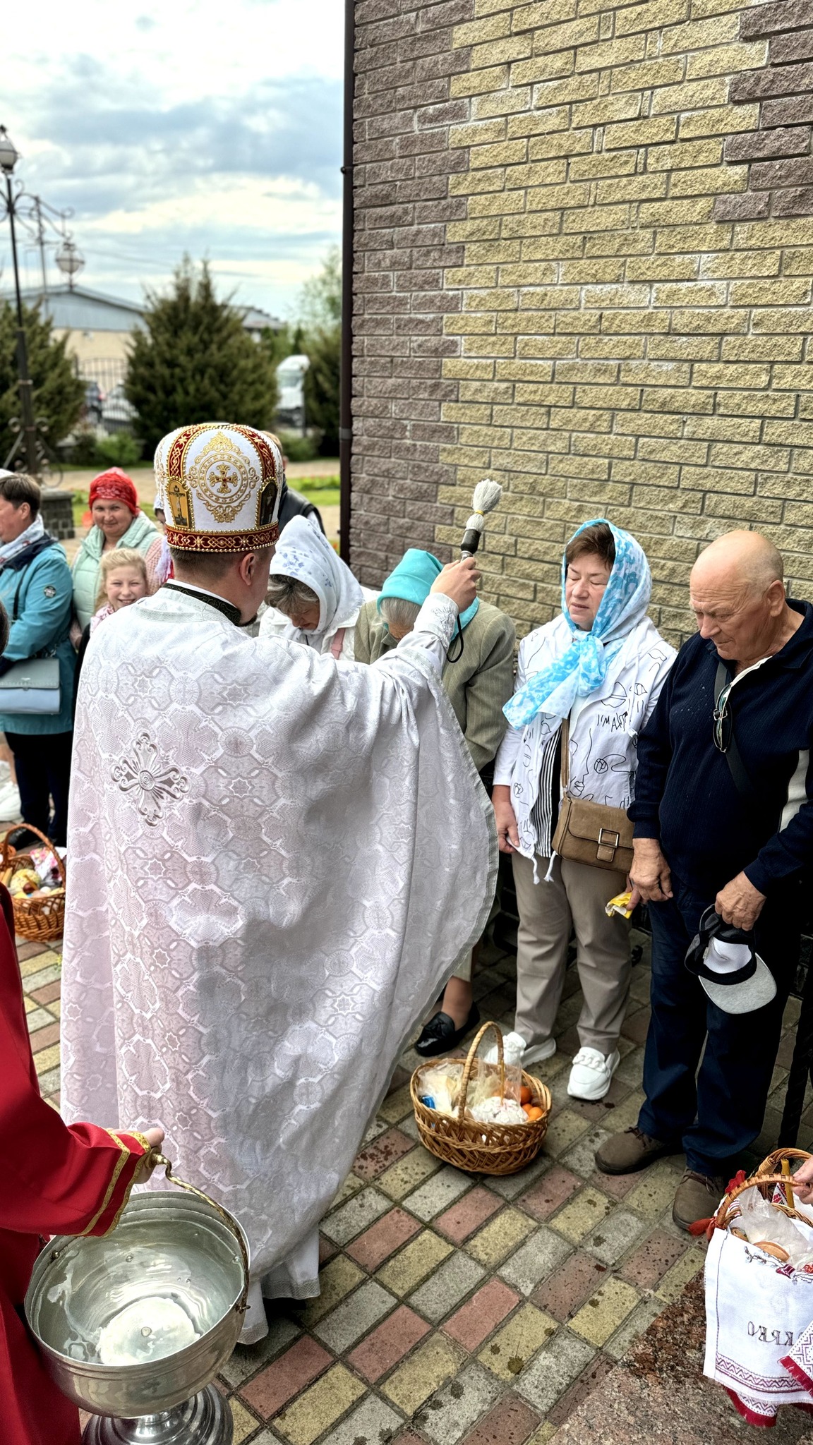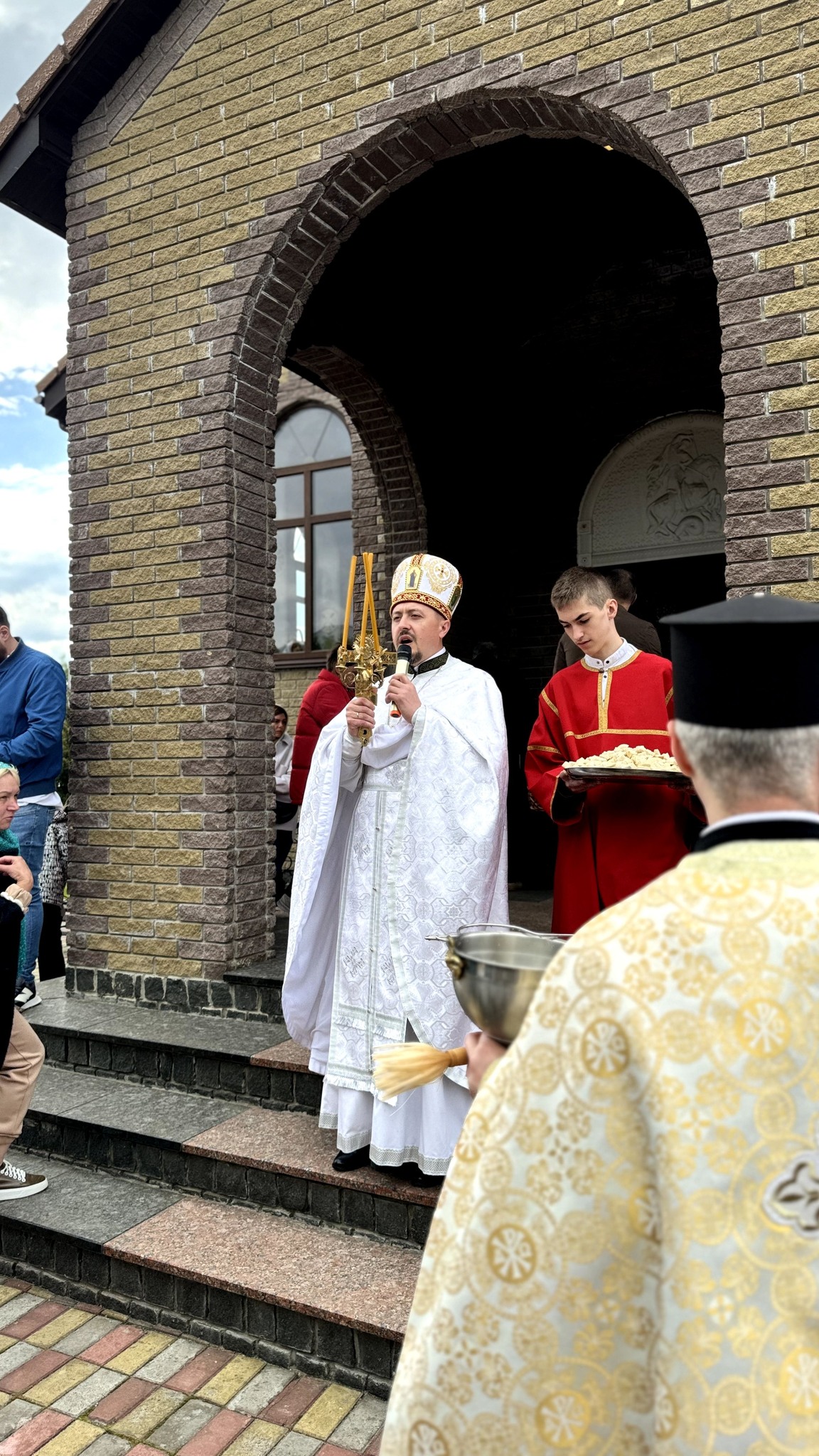 Наприкінці богослужіння протоієрей Павло Ядчишин освятив артос та привітав присутніх у храмі зі Світлим святом Христового Воскресіння. Після привітань відбулося освячення Пасхальних приношень на подвір'ї храму.