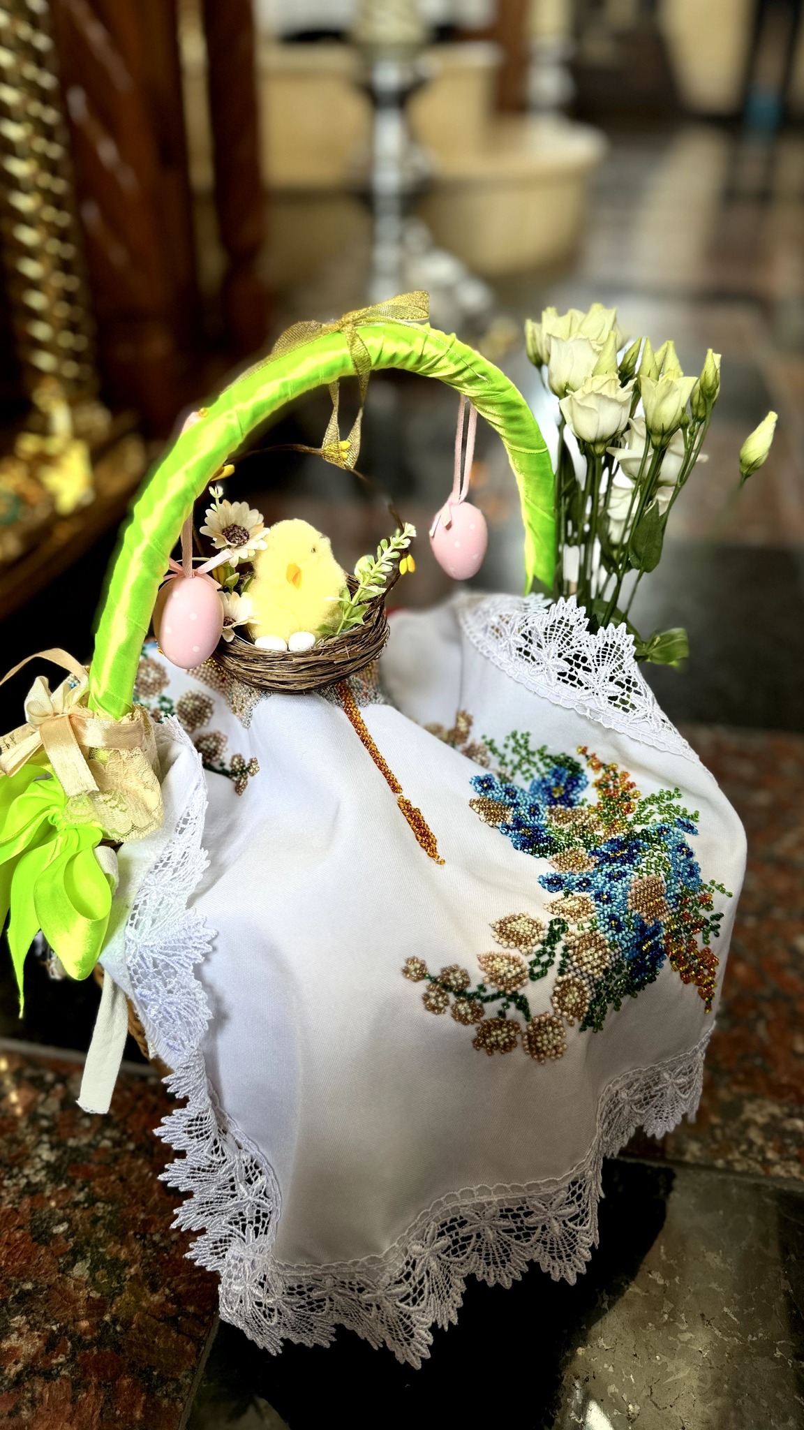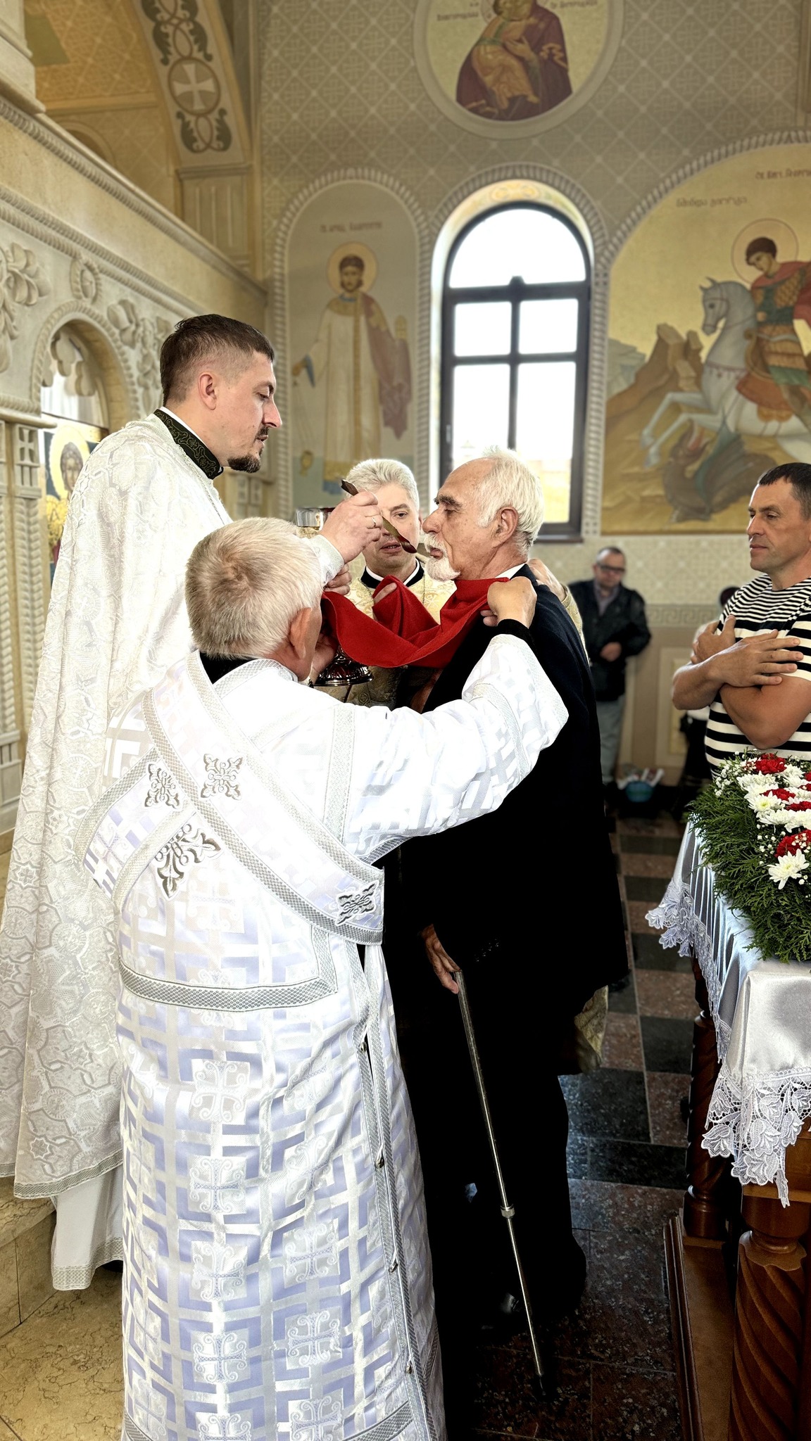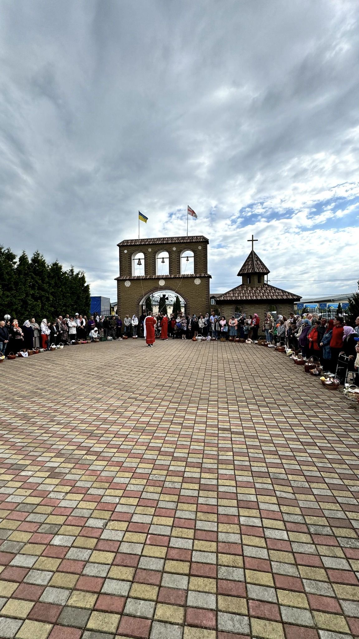 Наприкінці богослужіння протоієрей Павло Ядчишин освятив артос та привітав присутніх у храмі зі Світлим святом Христового Воскресіння. Після привітань відбулося освячення Пасхальних приношень на подвір'ї храму.