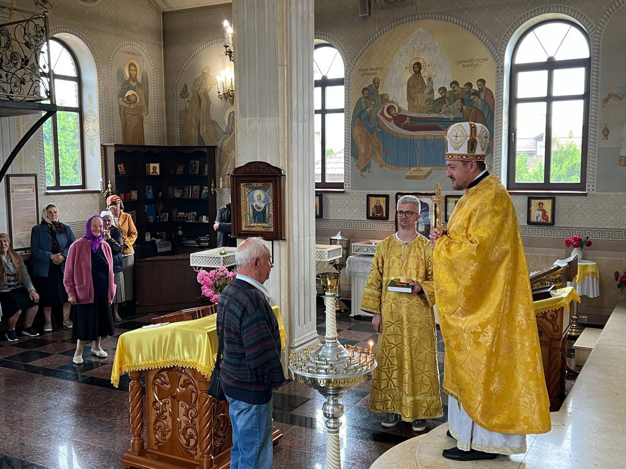 Також настоятель привітав хориста храму Івана Івановича з Днем Небесного покровителя — побажав йому міцного здоров’я, Божої допомоги та духовної радості у служінні Господеві через церковний спів.