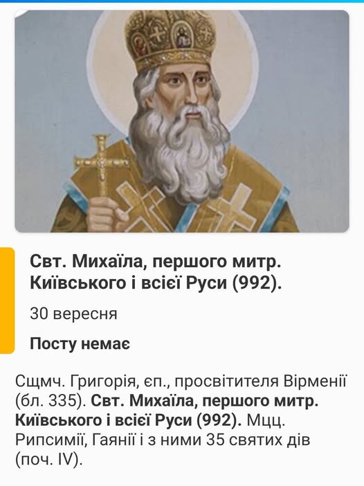 Святительське служіння Михаїла, першого митрополита Київського, тісно пов'язане з просвітницькою діяльністю святого рівноапостольного князя Володимира († 1015; пам'ять 28 липня, за юліанським календарем). У 988 році, незабаром після свого хрещення, святий Володимир закликав з Корсуні (нині Херсонес) грецьких священнослужителів для поширення на Русі православної віри. Серед них прибув до Києва і святитель Михаїл, він привіз святі ікони і богослужбові книги, церковне начиння, святі мощі угодників Божих. За декілька років служіння митрополита Київського в містах і селах було побудовано велику кількість храмів і засновано декілька монастирів. Літопис оповідає, що у ці роки «віра православна розквітла і засяяла, як сонце». Одна з головних турбот святого князя Володимира і святителя Михаїла полягала у влаштуванні шкіл. В тому ж літописі говориться, як вони «почали у батьків і матерів брати молодих людей і віддавати в училище вчитися грамоті».Євангельське благовістя першого митрополита Київського простягалося далеко за межі Києва: Переславль, Чернігів, Білгород, Володимир ось неповний список міст, в яких відкривалися з благословення святителя Михаїла православні храми. Не без допомоги святителя рівноапостольний князь Володимир хрестив чотирьох болгарських князів і одного печенізького, відправив ченця Марка проповідувати християнську віру до волзьких булгар-магометан. З багатьох побудованих в Києві храмів найбільшим був Десятинний на честь Пресвятої Богородиці. Він був прикрашений іконами, хрестами і начинням, привезеними святителем Михаїлом з Корсуні. В цей храм при святому Володимирі був перенесений гріб з мощами святої рівноапостольної княгині Ольги († 969; пам'ять 24 липня, за юліанським календарем). Тут же був похований перший Київський митрополит, який відійшов до Господа 28 червня 992 року. Його первосвятительство на Київській кафедрі залишило добру пам'ять.