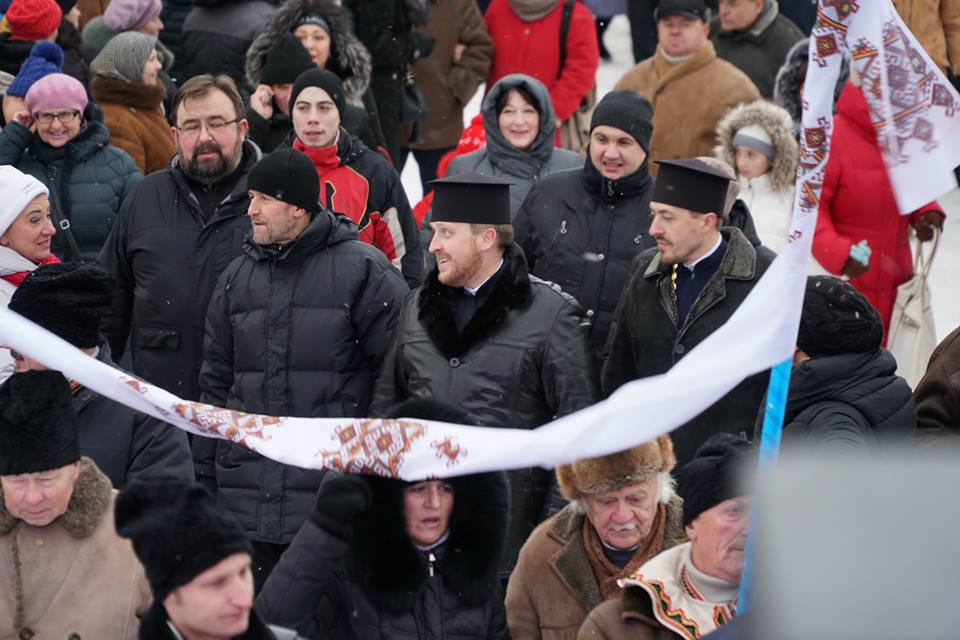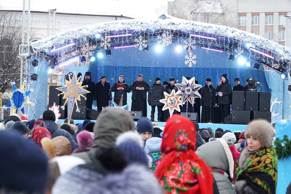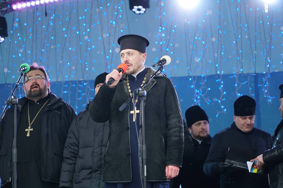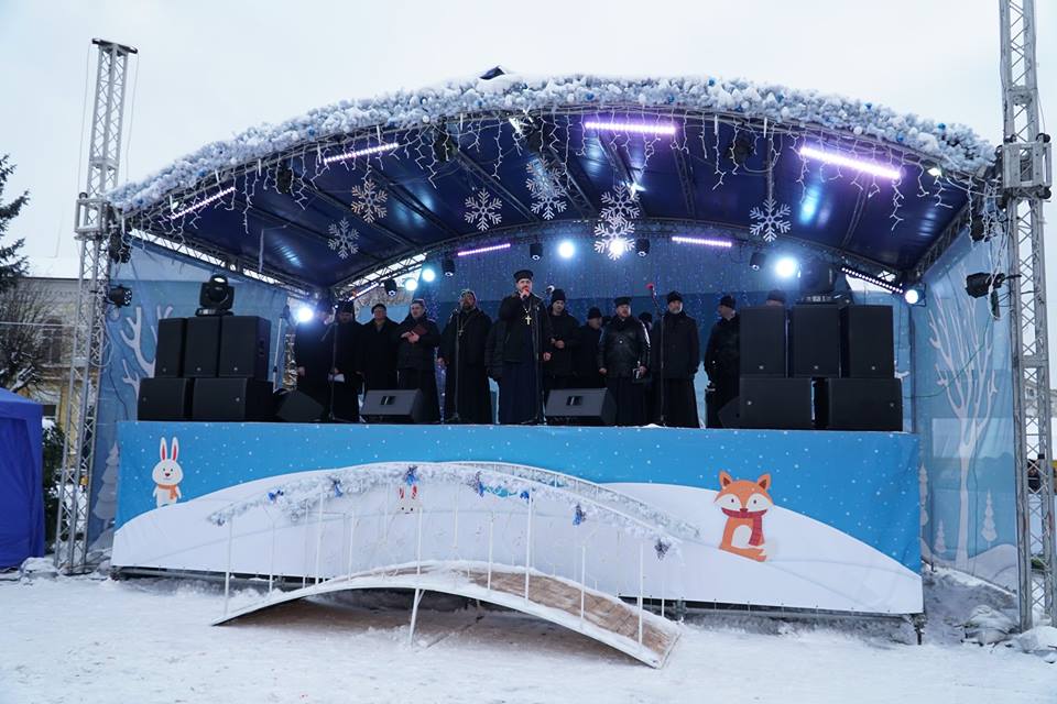 Зі сцени учасників святкування привітав секретар єпархіального управління протоієрей Павло Ядчишин та священнослужителі Свято-Михайлівського кафедрального собору м. Житомира заспівали житомирянам різдвяних колядок.