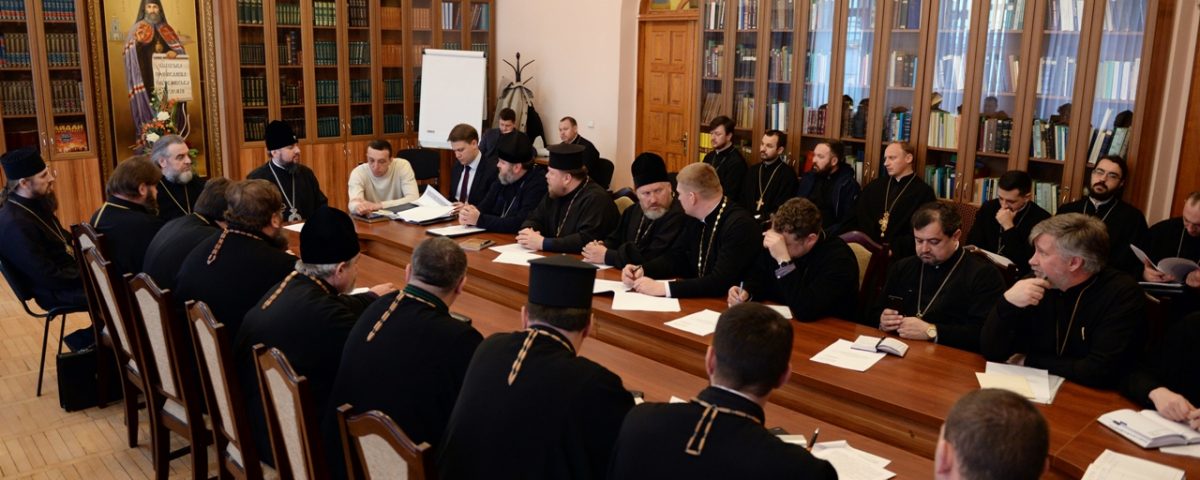 Представники єпархій з усієї України 19 березня 2019 року зібралися в залі засідань Вченої ради Київської православної богословської академії задля розгляду питань стосовно юридичної реєстрації статутної документації парафій та єпархій.