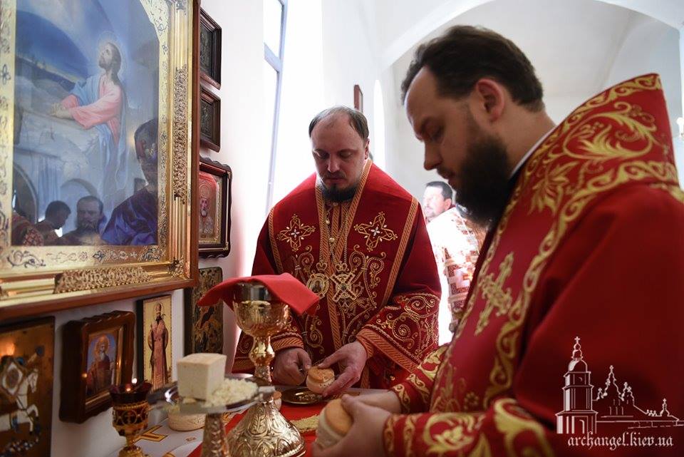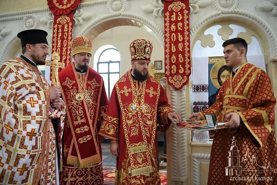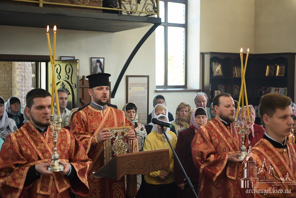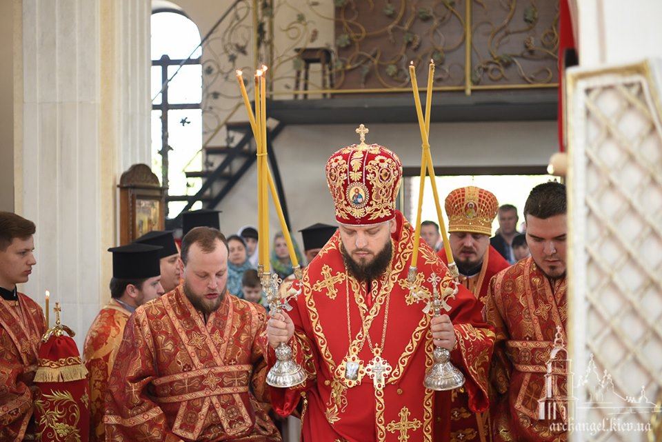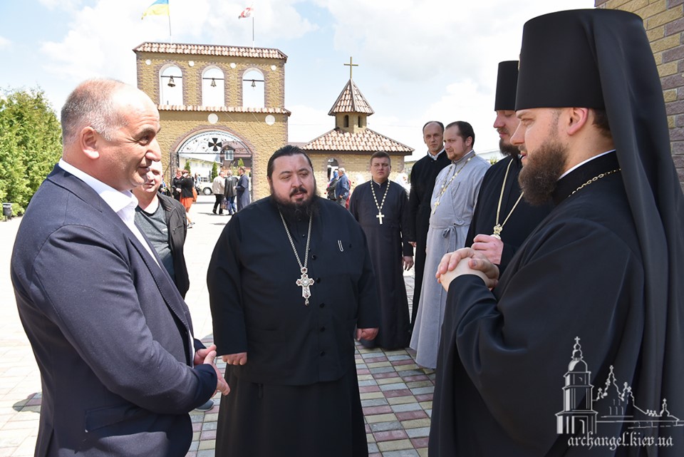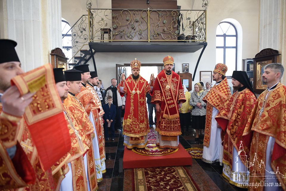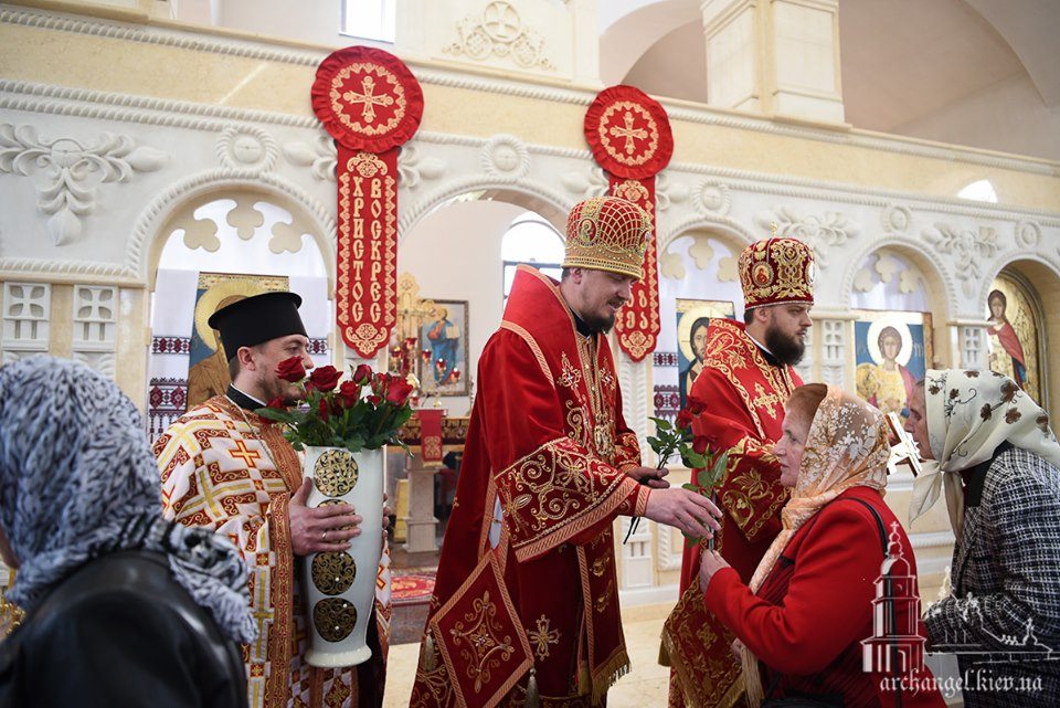 Після відпусту єпископ Паісій подякував архієпископу Агапіту за візит та спільну молитву. В свою чергу намісник Михайлівського Золотоверхого монастиря привітав усіх присутніх у храмі з воскресним днем, а всіх жінок із святом святих жон-мироносиць.