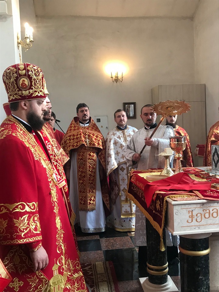 Після прочитання Святого Євангелія архієпископ Агапіт звернувся до присутніх у храмі з словом проповіді та розповів про мученицький подвиг великомученика Георгія та жон-мироносиць.