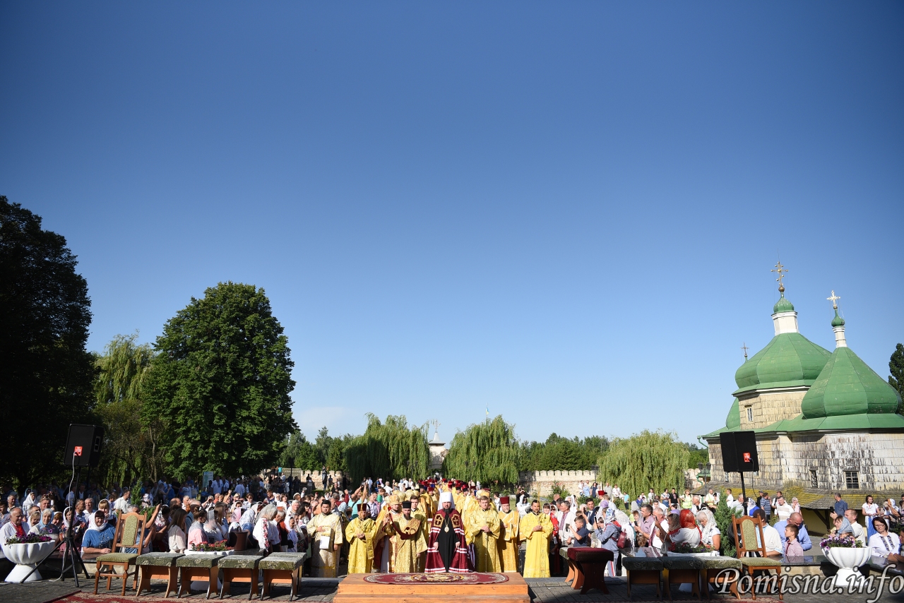 Його Блаженству співслужили митрополит Львівський і Сокальський Димитрій, митрополит Луцький і Волинський Михаїл, митрополит Переяслав-Хмельницький і Вишневський Олександр, архієпископ Чернівецький і Кіцманський Онуфрій, архієпископ Рівненський і Острозький Іларіон, архієпископ Чернігівський і Ніжинський Євстратій, архієпископ Вишгородський Агапіт, єпископ Володимир-Волинський і Турійський Матфей, єпископ Тернопільський і Теребовлянський Павло, єпископ Харківський і Богодухівський Митрофан, єпископ Ужгородський і Закарпатський Варсонофій, єпископ Херсонський і Каховський Борис, єпископ Житомирський і Овруцький Паїсій, єпископ Рівненський і Сарненський Гавриїл, намісник обителі архімандрит Софроній (Бордюк) та численне запрошене духовенство. Велика кількість вірян цього дня молилася разом із Предстоятелем та єпископатом помісної Української Православної Церкви.