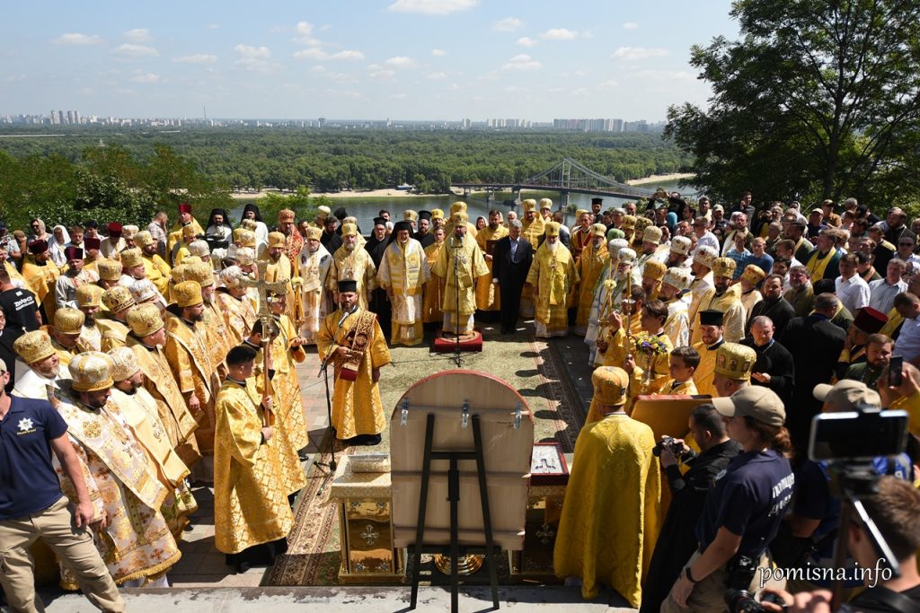 Після Божественної літургії року відбувся український хресний хід від храму Софії Київської до пам’ятника святому рівноапостольному князю Володимиру, де було звершено молебень з нагоди 1031-ї річниці хрещення Руси-України. Хресний хід і молебень очолив Блаженнійший Митрополит Київський і всієї України Епіфаній. Разом з Предстоятелем помісної Української Православної Церкви до постаменту святого князя пройшла повнота єпископату, п’ятий Президент України Петро Порошенко та численні священики й віряни.