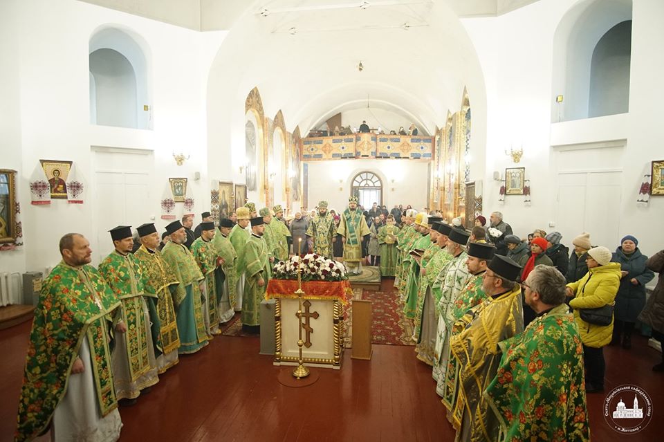 З цієї нагоди у головному храмі м. Житомира – Свято-Михайлівському кафедральному соборі було звершено Божественну літургію святителя Іоана Золотоустого, яку очолив єпископ Паїсій у співслужінні єпископа Одеського та Балтського Павла.