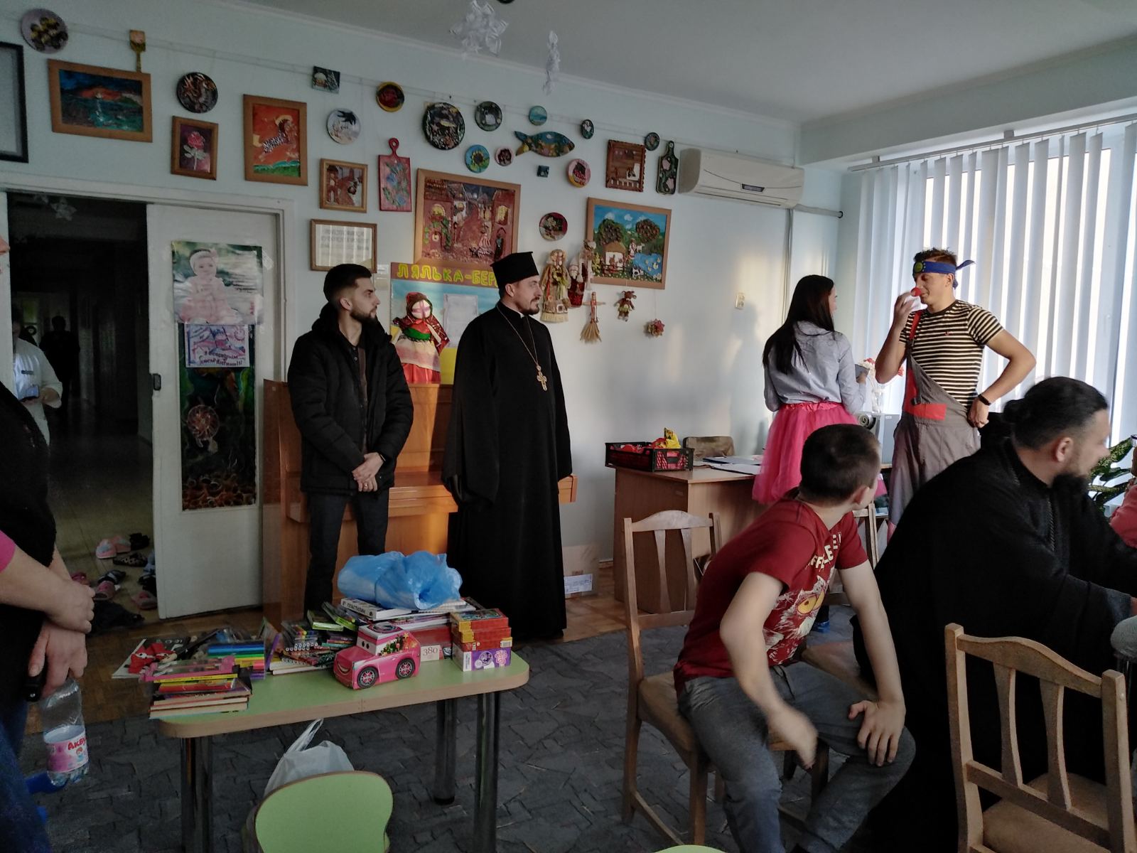 Разом зі священнослужителями у цей день, привітати дітей, їхніх батьків і працівників закладу, прибули волонтери-аніматори Дмитро та Анастасія, які допомогли дітям у вигляді різних розваг та спілкування хоча б на короткий час забути про хворобу.