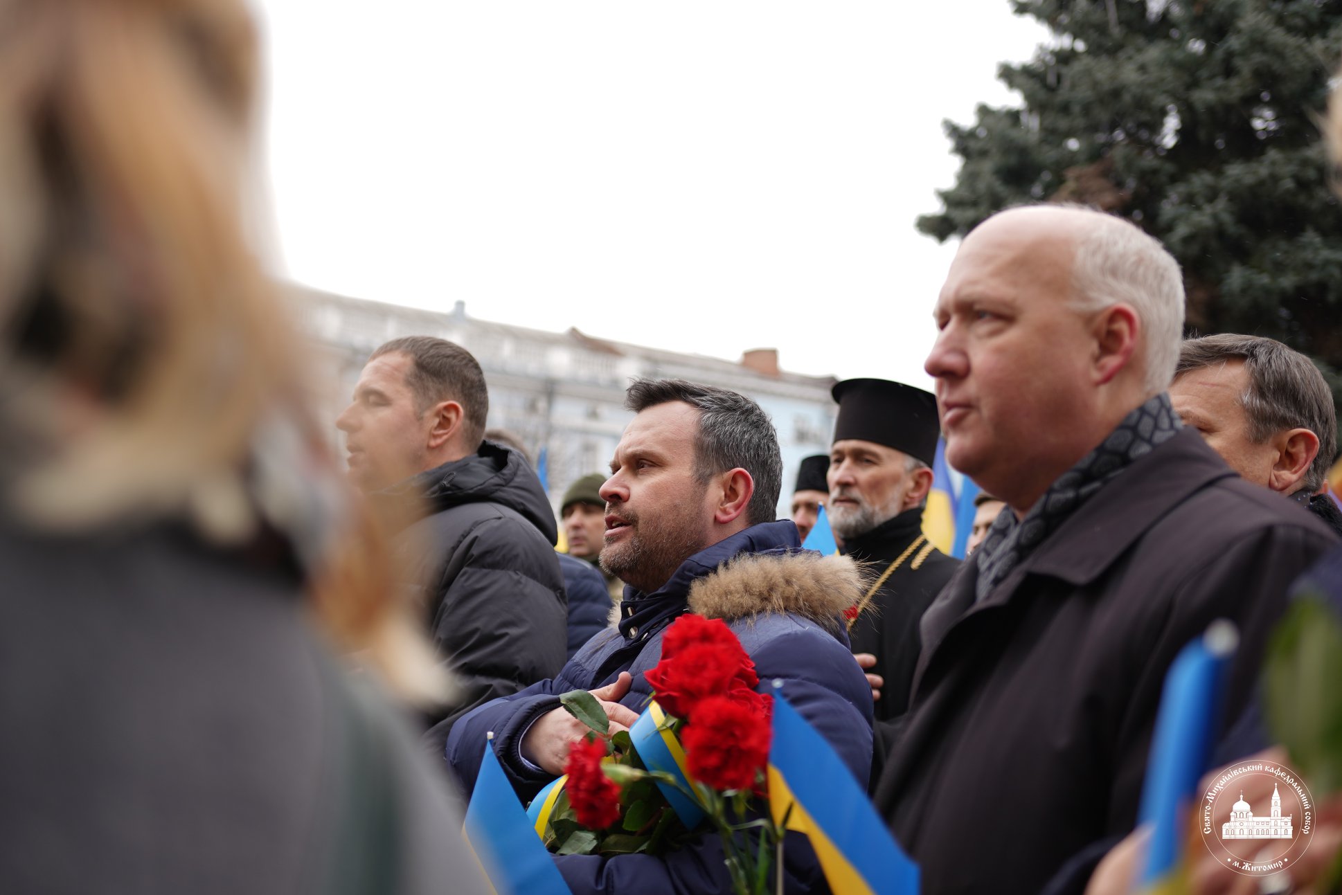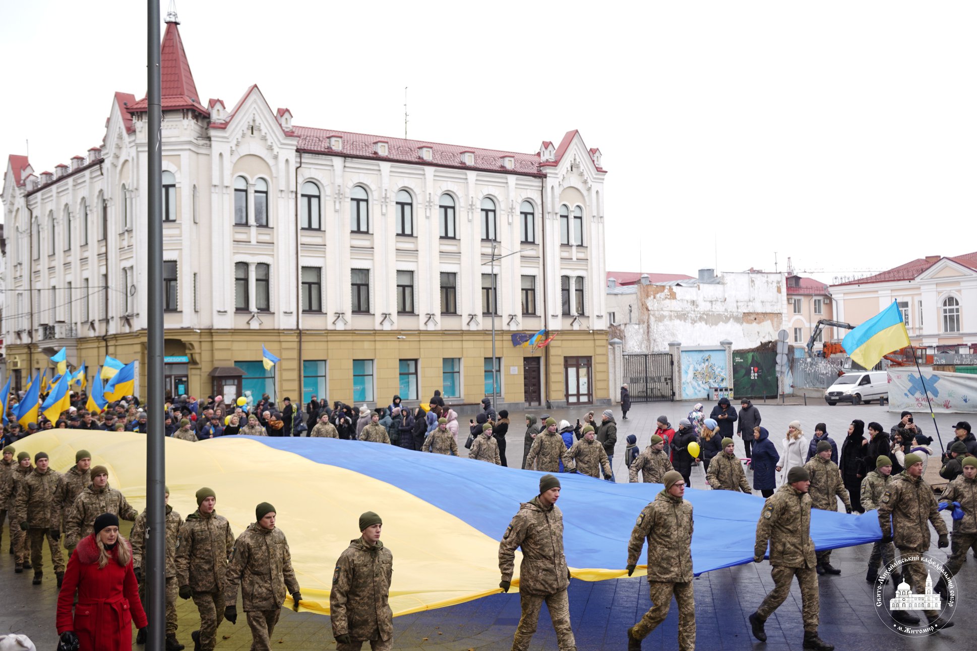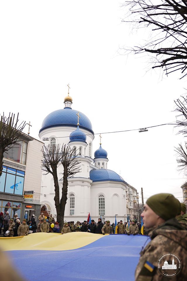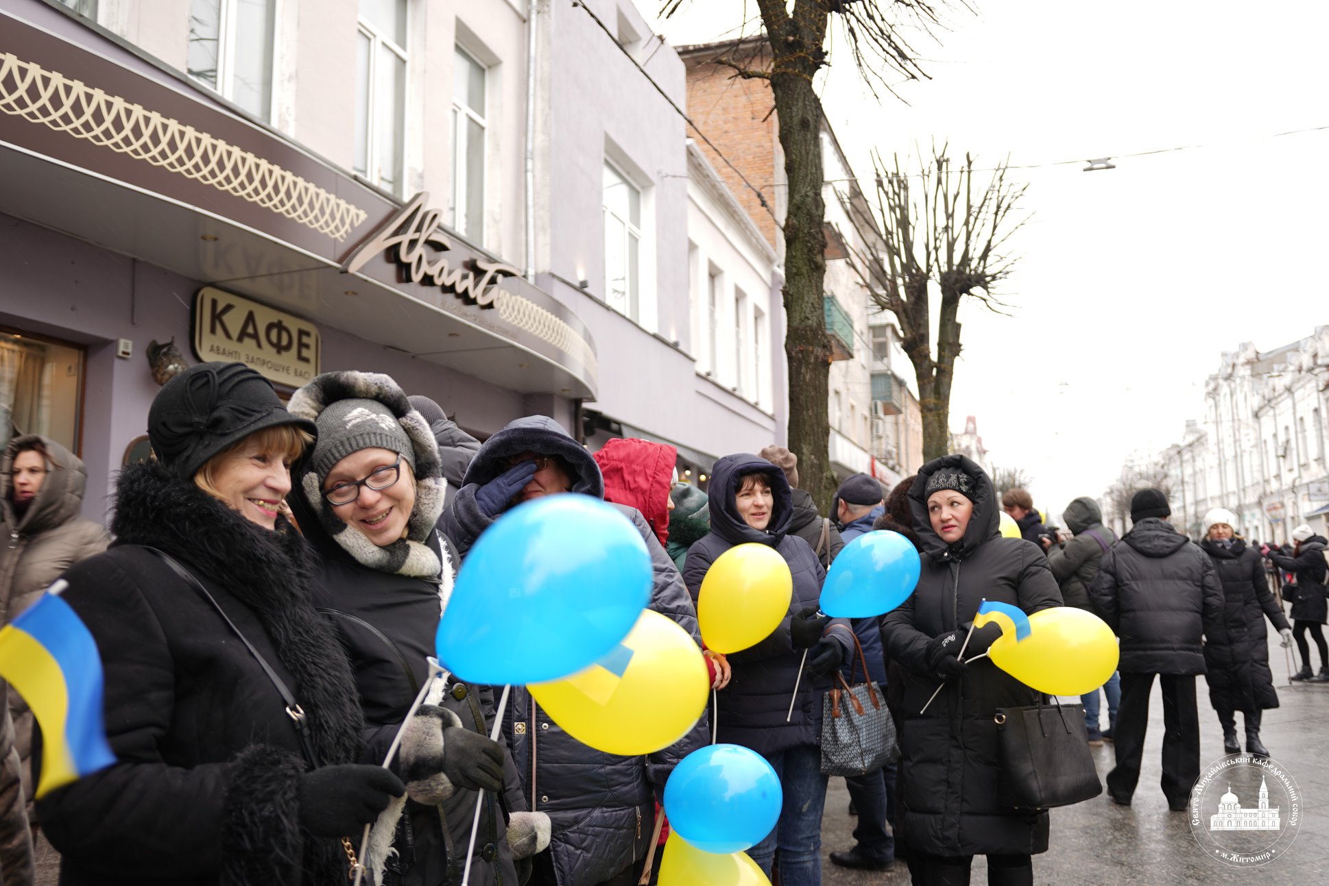 З нагоди цього свята житомиряни у центрі міста утворили живий ланцюг у понад 1 кілометр: від Свято-Михайлівського кафедрального собору до майдану С.П. Корольова.
