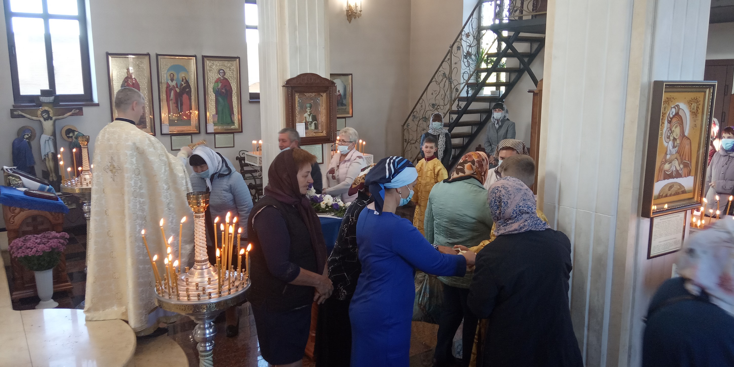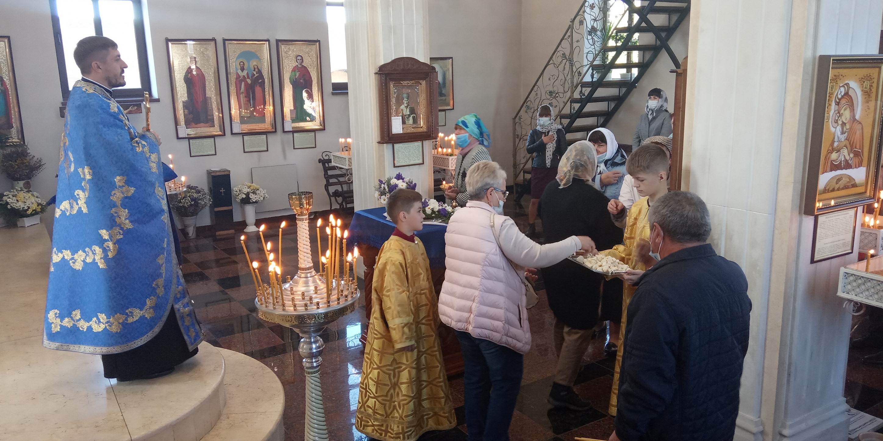 По завершені літургії протоієрей Павло Ядчишин привітав вірних з великим святом та звернувся зі словами проповіді. Приступаючи до благословення хрестом, кожен з присутніх отримав ікону Покрови Пресвятої Богородиці з молитвою. Ставши перед іконою Божої Матері, всі вірні, під керівництвом настоятеля храму, заспівали молитву "Царице моя Преблага".