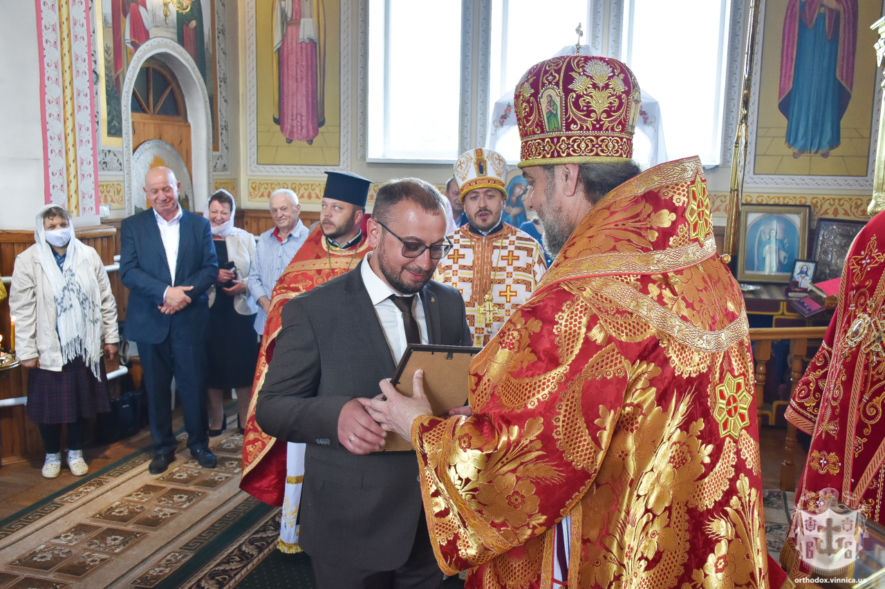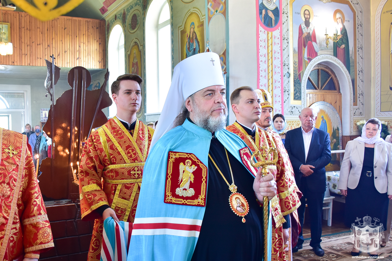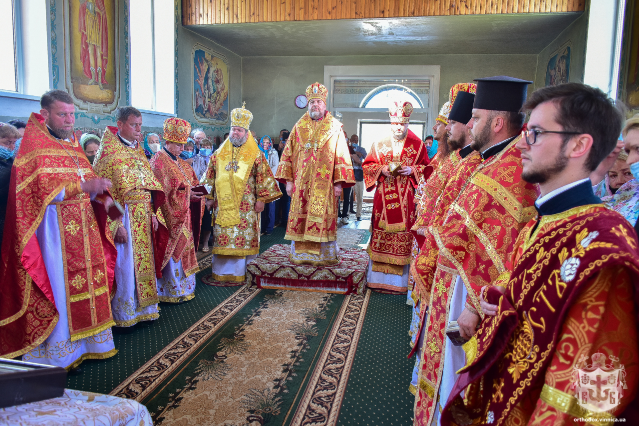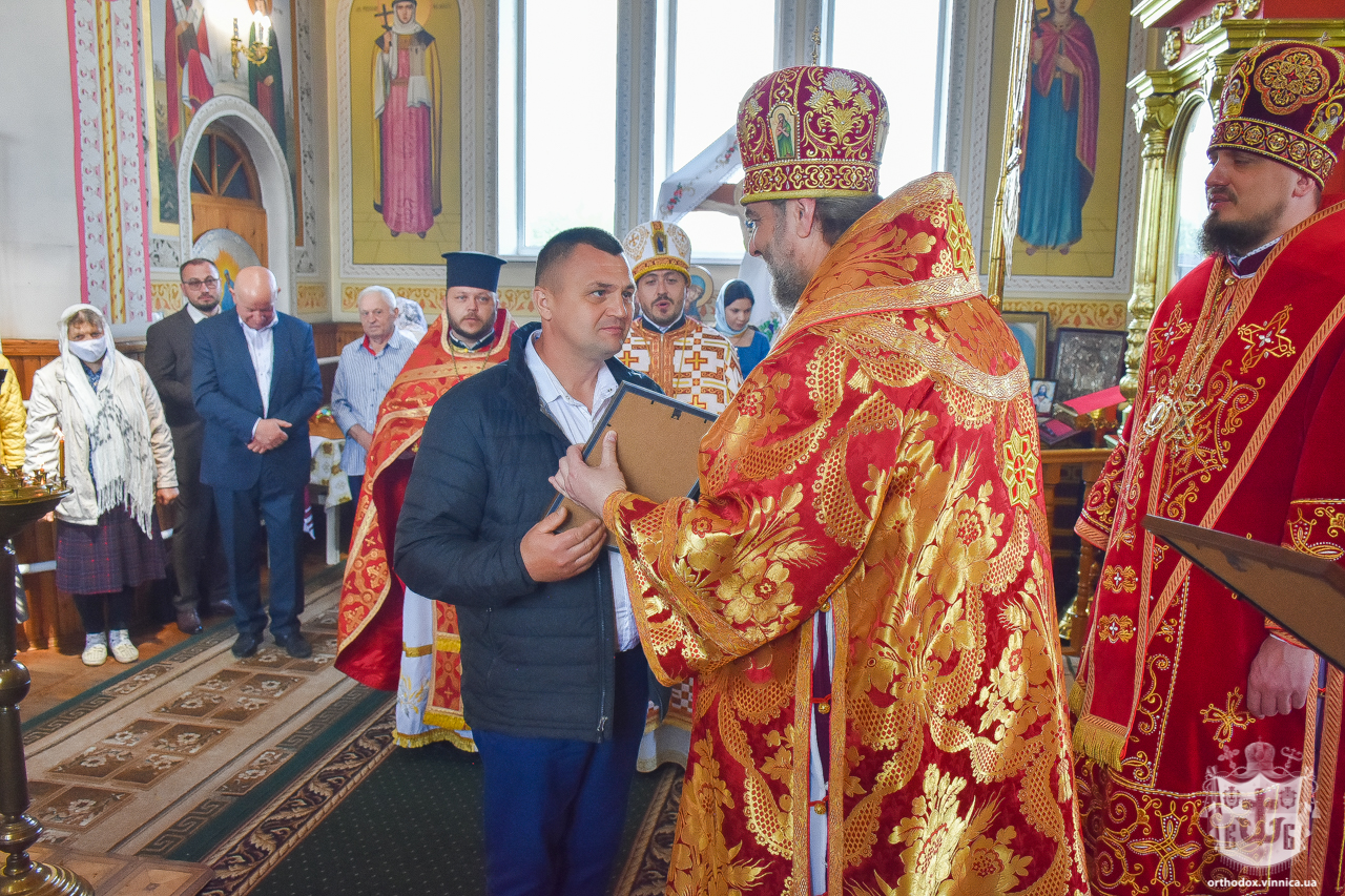 У місцевому храмі літургію очолив митрополит Вінницький і Барський Симеон у співслужінні єпископа Харківського і Богодухівського Митрофана та єпископа Житомирського і Овруцького Паїсія, настоятеля храму протоієрея Валерія Кушніра, секретаря Управління Житомирсько-Овруцької єпархії, настоятеля Свято-Георгіївського храму м. Житомира протоієрея Павла Ядчишина, намісника чоловічого монастиря преподобного Паїсія Величковського смт Хорошів, Хорошівського району, Житомирської області ігумена Трофима (Ханаса) та запрошеного духовенства. Під час літургії було піднесено молитви за мир для України та про припинення епідемії коронавірусу.