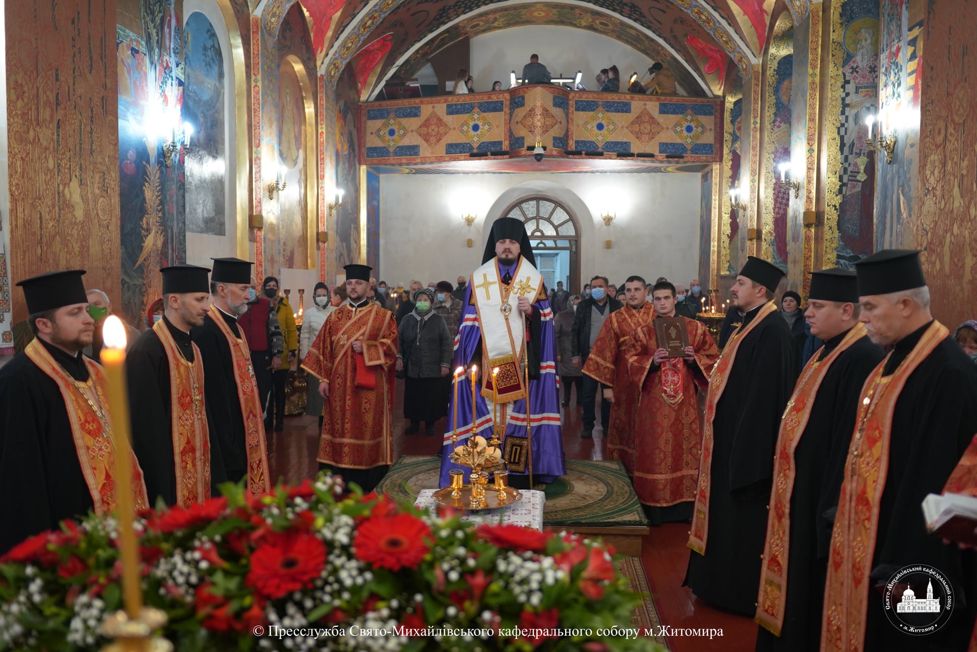 Урочисті святкування з нагоди престольного свята храму розпочались напередодні. 20 листопада 2021 року, в Свято-Михайлівському кафедральному соборі м. Житомира було звершене всенічне бдіння, яке очолив єпископ Житомирський і Овруцький Паїсій.