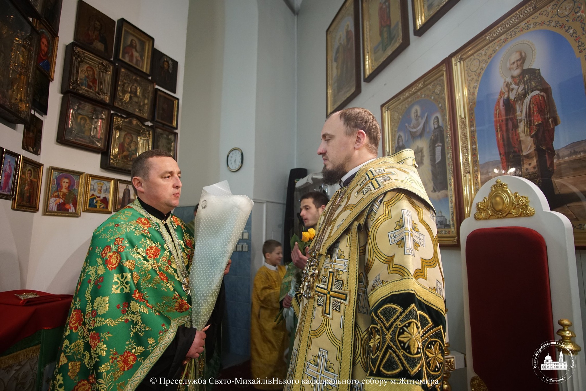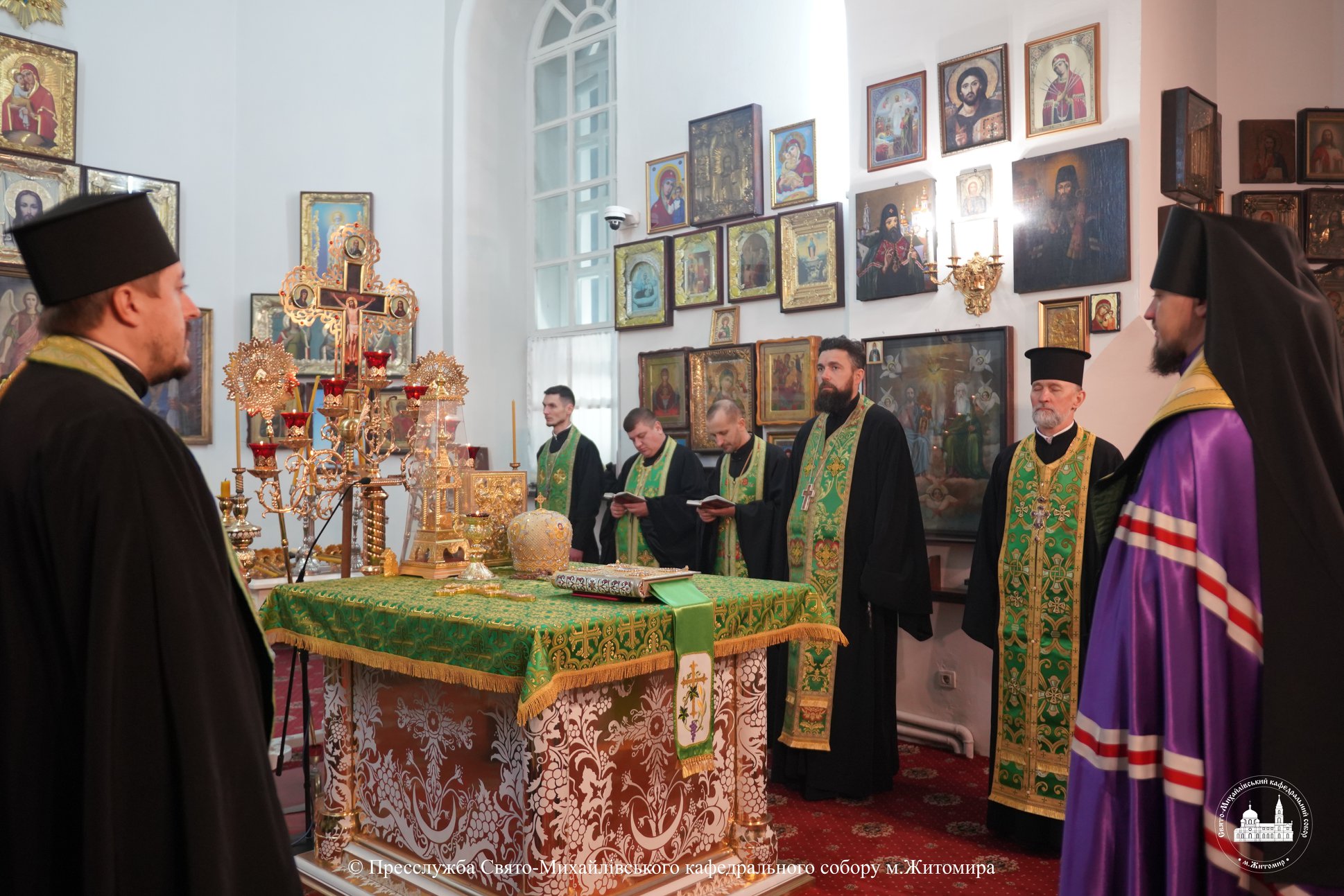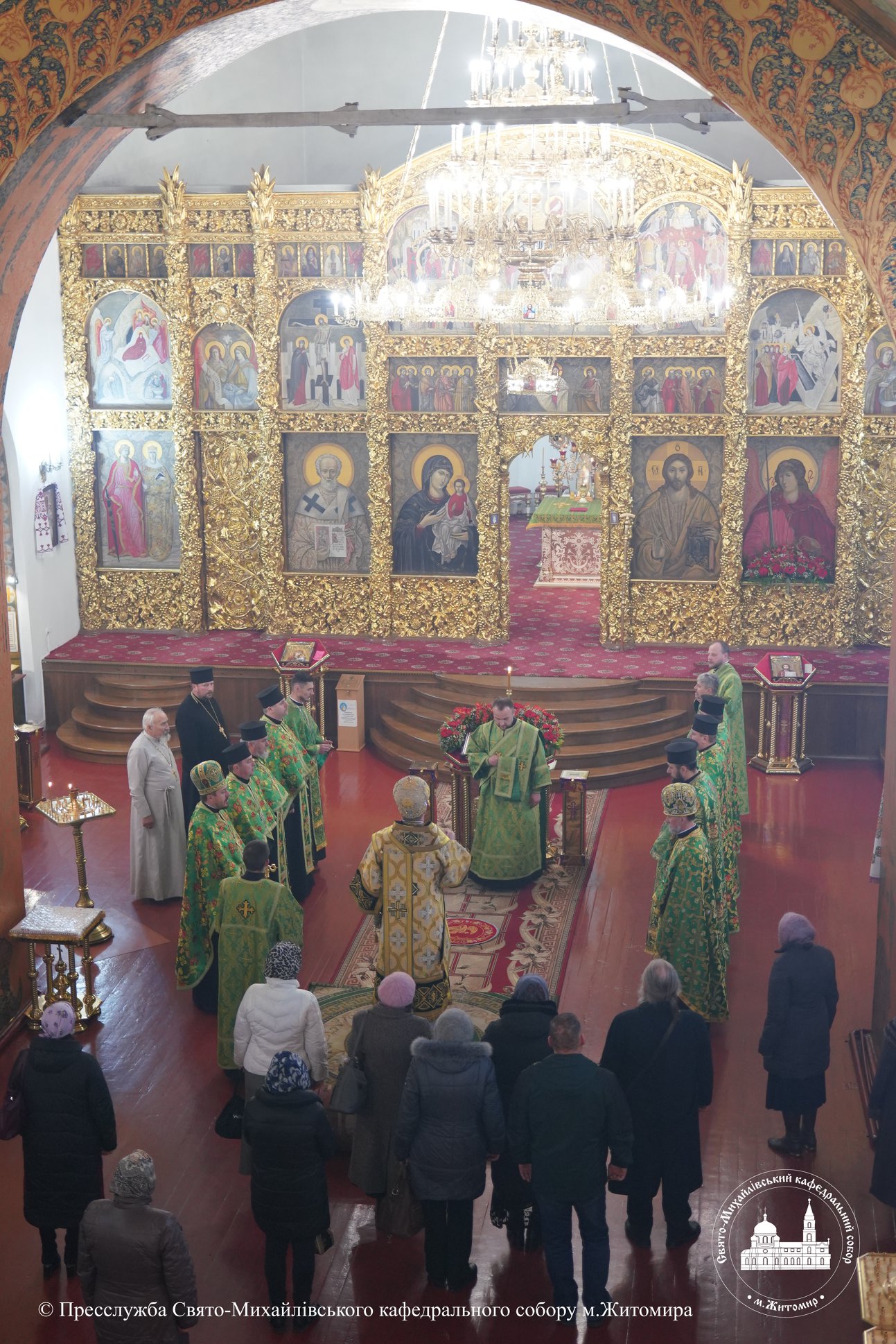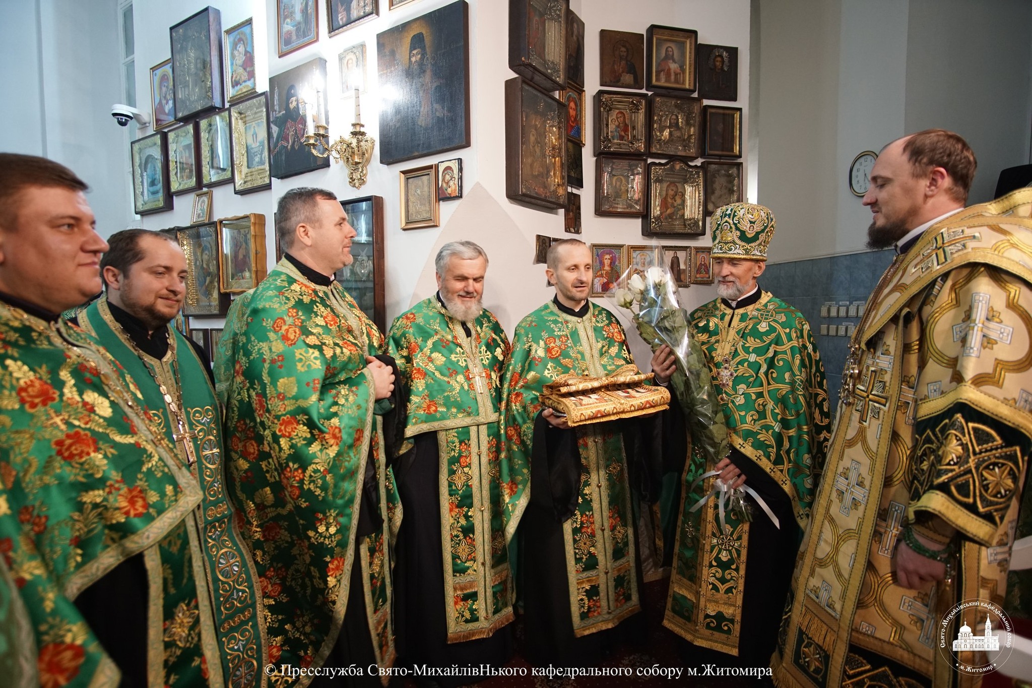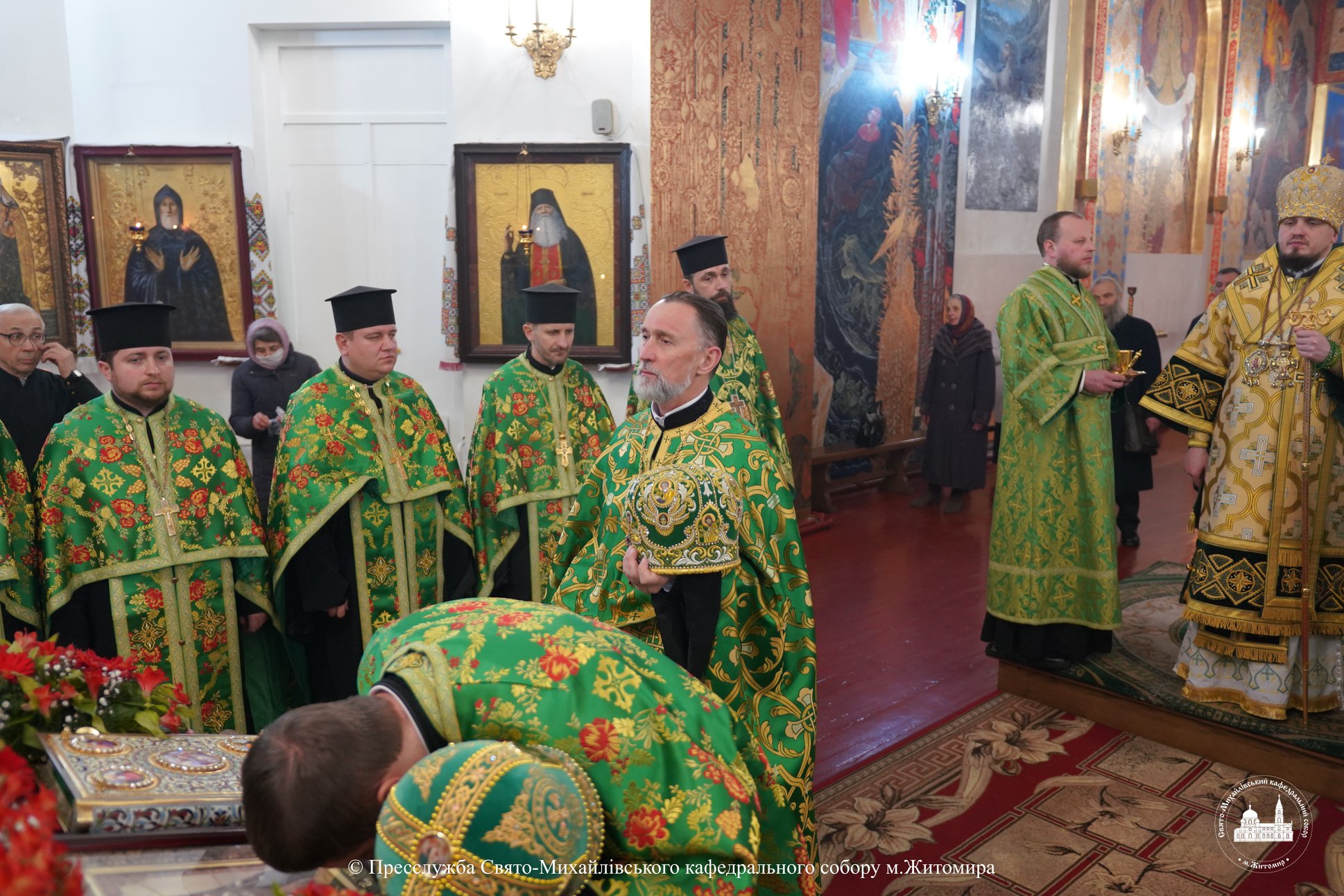 За богослужінням архіпастирю співслужили настоятель Свято-Михайлівського кафедрального собору м. Житомира протоієрей Богдан Бойко, секретар єпархії, настоятель Свято-Георгіївського храму м. Житомира протоієрей Павло Ядчишин, клірики храму та духовенство єпархії.