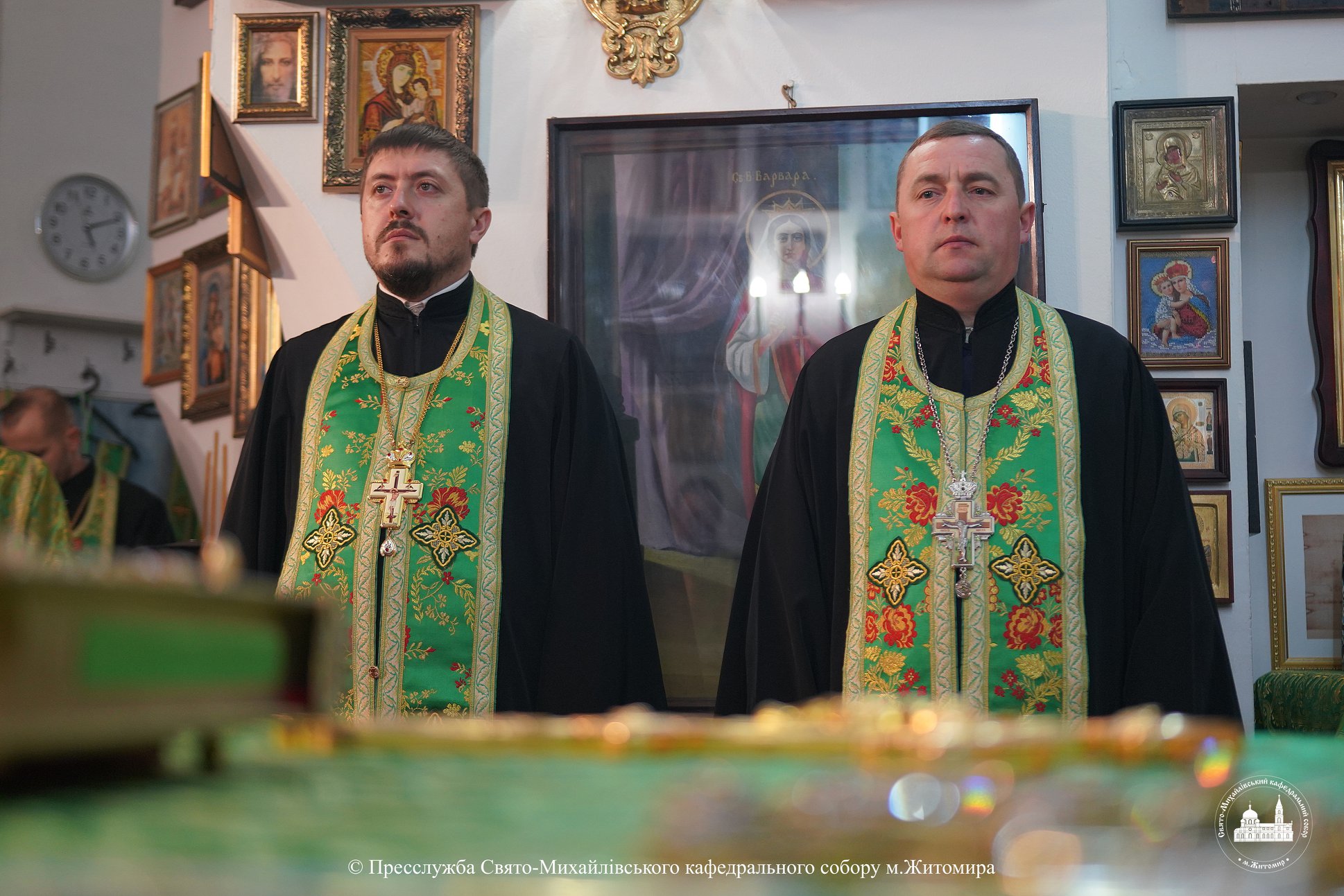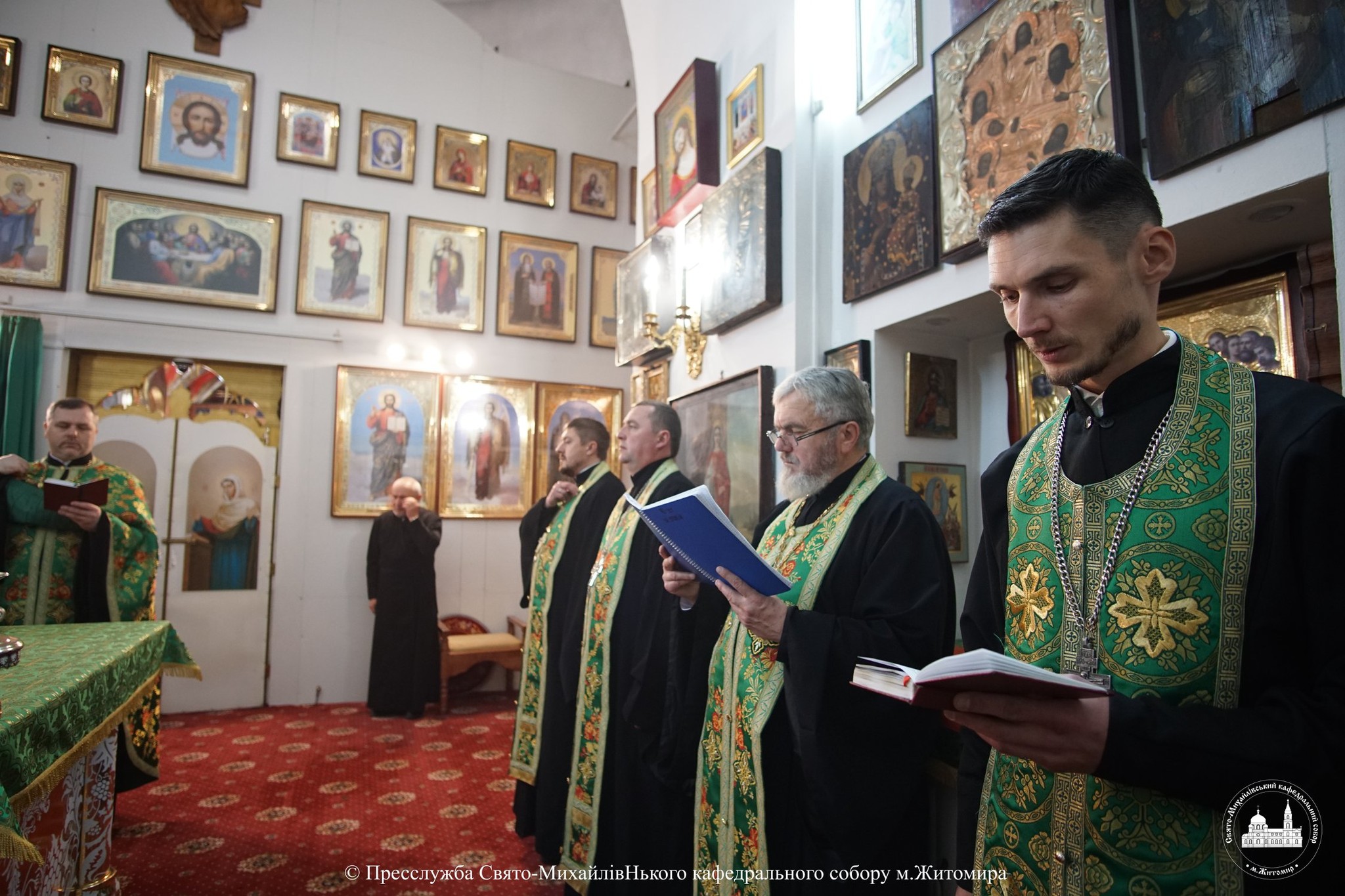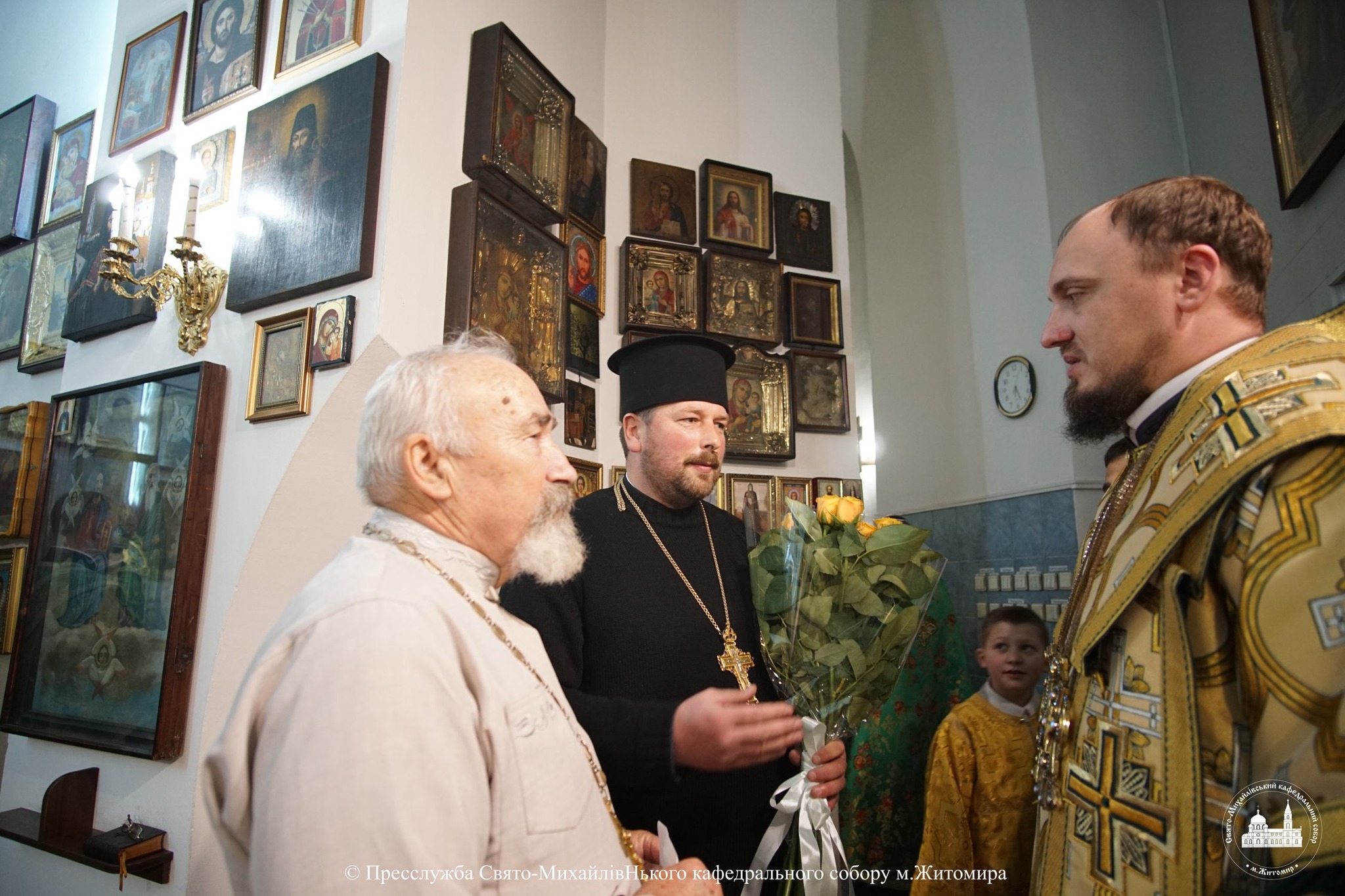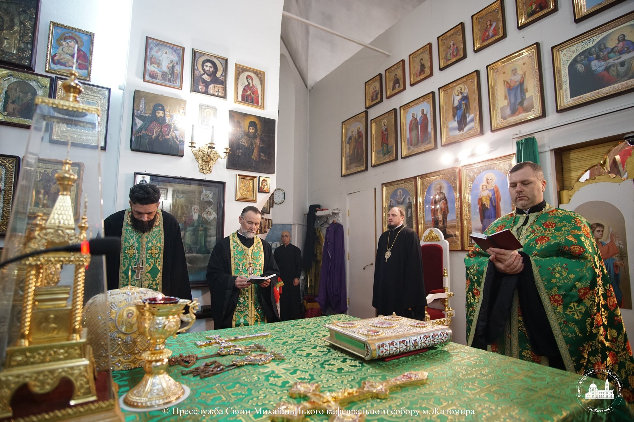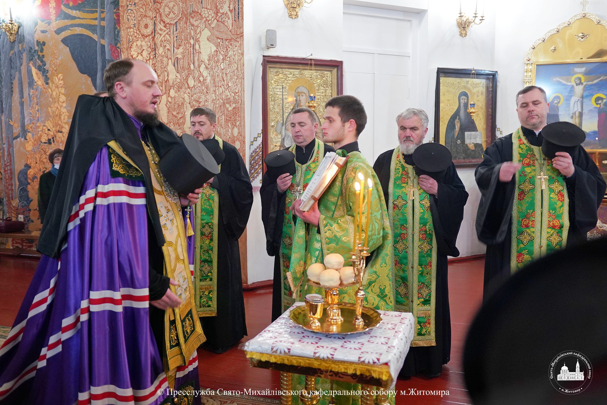 За богослужінням архіпастирю співслужили настоятель Свято-Михайлівського кафедрального собору м. Житомира протоієрей Богдан Бойко, секретар єпархії, настоятель Свято-Георгіївського храму м. Житомира протоієрей Павло Ядчишин, клірики храму та духовенство єпархії.