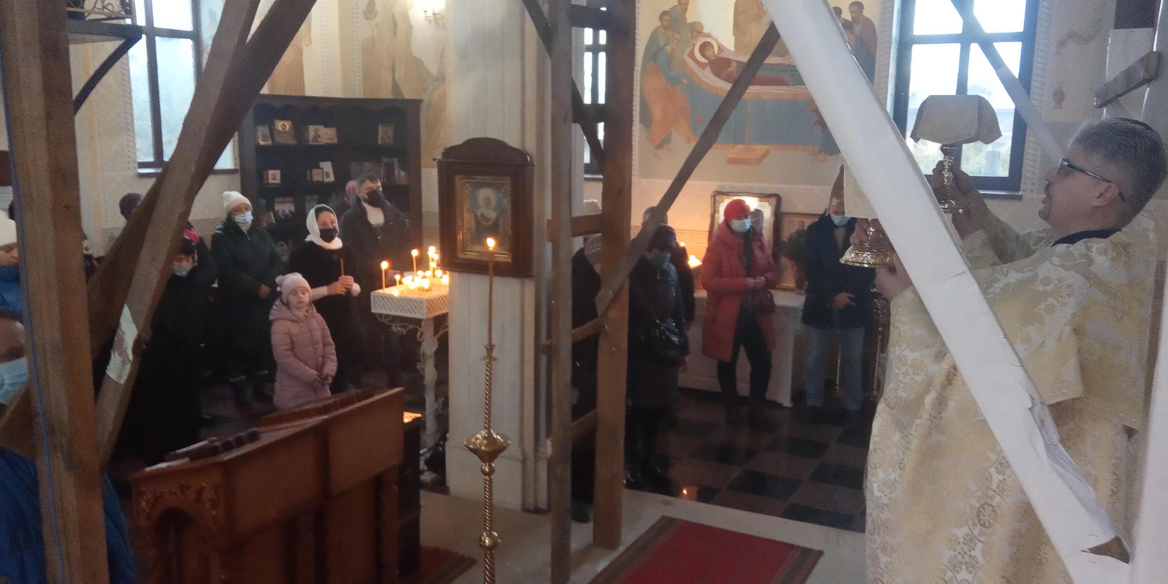 19 грудня 2021 року, у Неділю 26-ту після П'ятдесятниці, в день пам'яті святителя Миколая, архієпископа Мир Лікійських, чудотворця, секретар Управління Житомирсько-Овруцької єпархії, настоятель Свято-Георгіївського храму м. Житомира протоієрей Павло Ядчишин у співслужінні клірика єпархії ієрея Максима Роговця звершив Божественну літургію святого отця Іоана Золотоустого. Напередодні була відслужена Велика вечірня з літією.