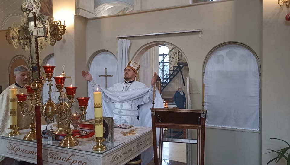 За літургією була піднесена сугуба молитва за припинення згубної пошесті (епідемії).