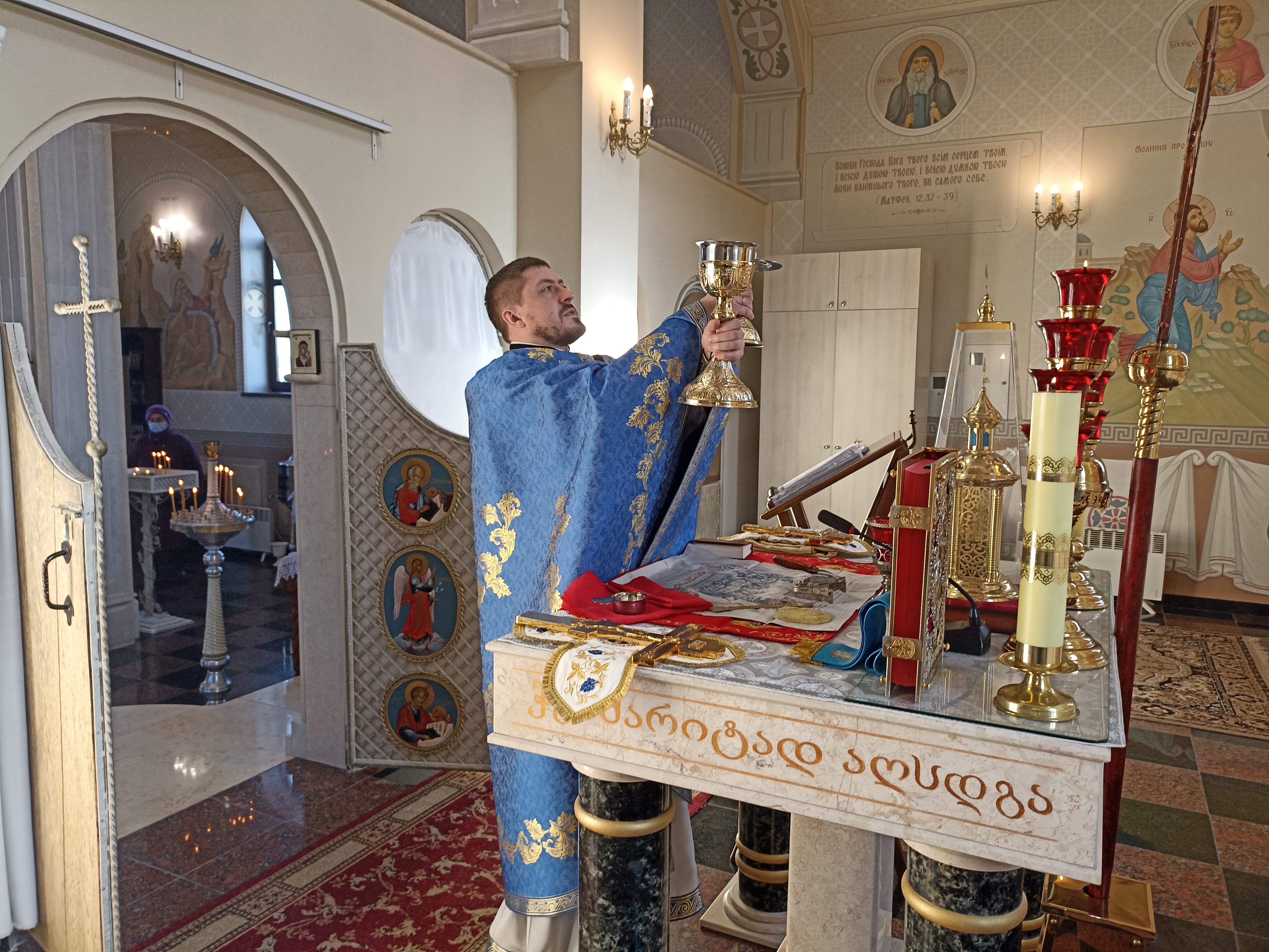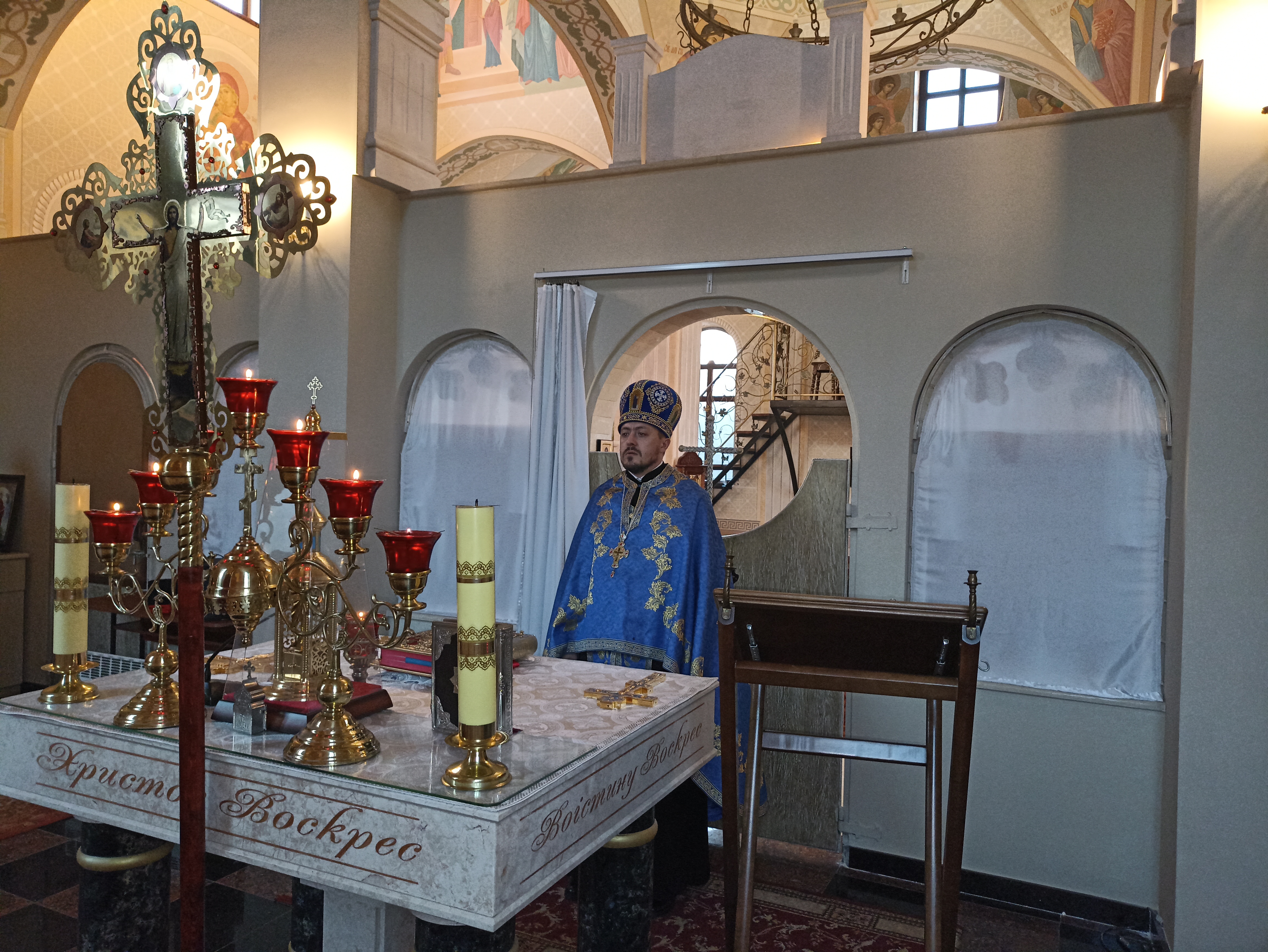 На завершення богослужіння настоятель храму звершив чин малого освячення води, освятив свічки принесені парафіянами, та привітав присутніх із великим християнським святом. Також священник Павло наголосив на тому, що не потрібно піддаватися паніці, тому, що ворог роду людського диявол, разом зі своїми слугами робить усе, щоб посіяти між людьми страх, розділення та ворожнечу. Тому в час великих випробувань потрібно посилено возносити молитви до Бога, вірити і надіятися на Боже милосердя і Господь обов'язково збереже і захистить своїх дітей, які стоять на стороні правди і не мають наміру заволодіти чужими землями, а навпки захищають своє рідне, свій дім.