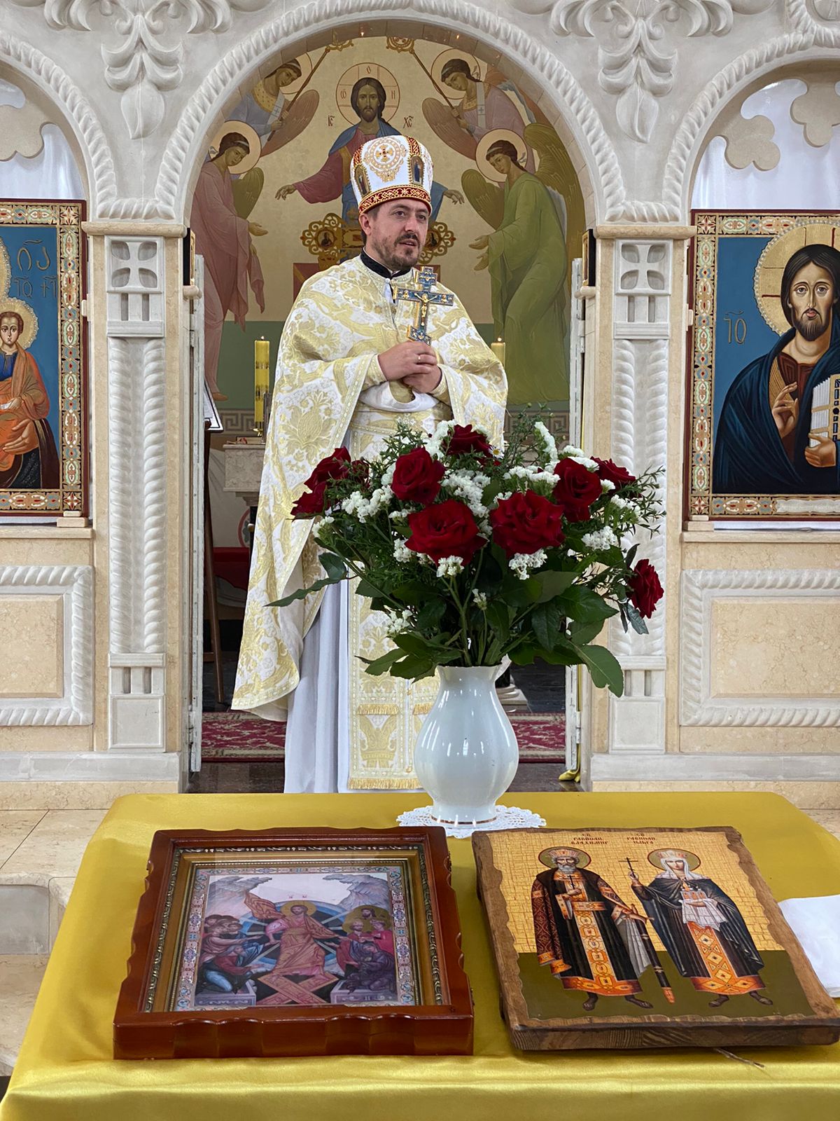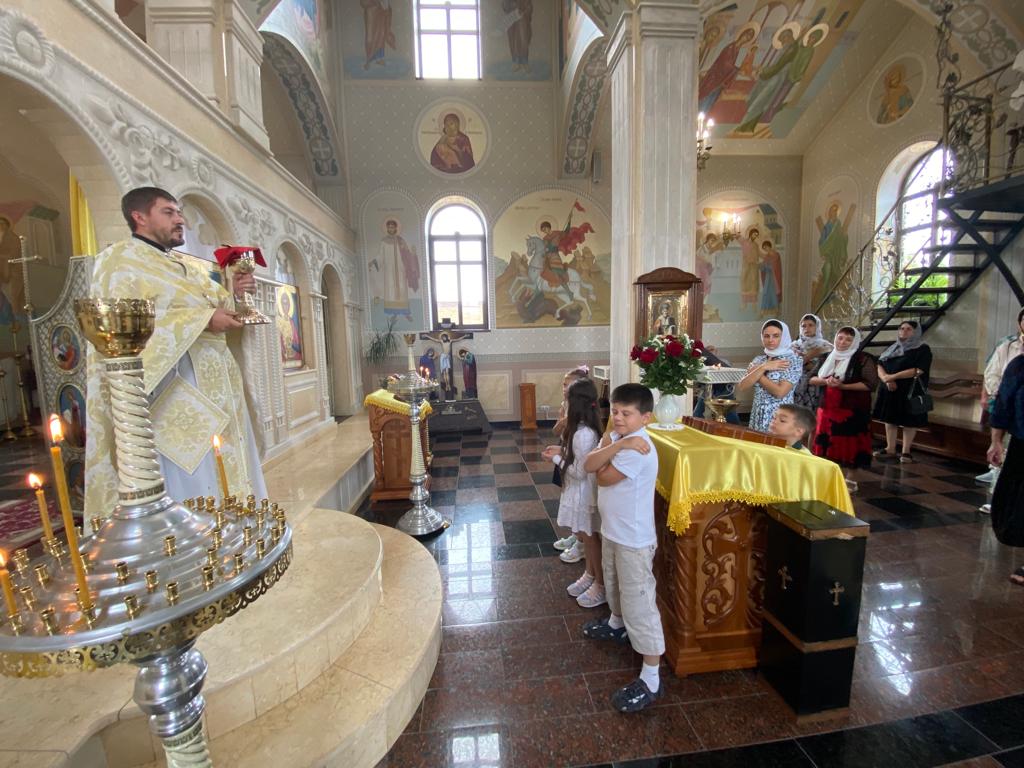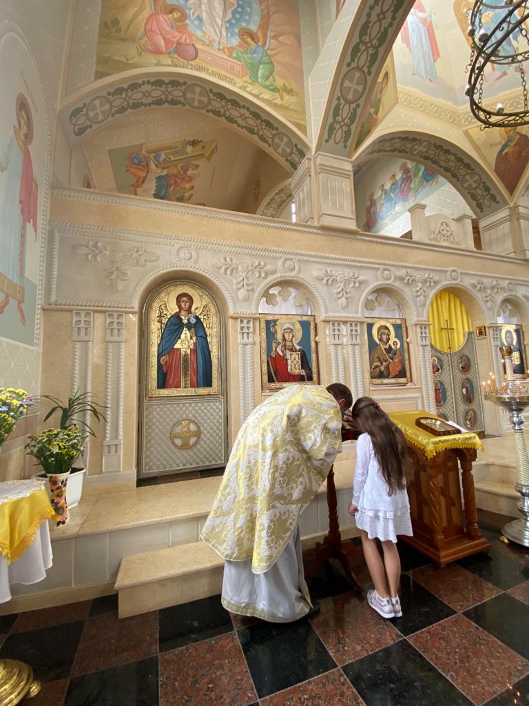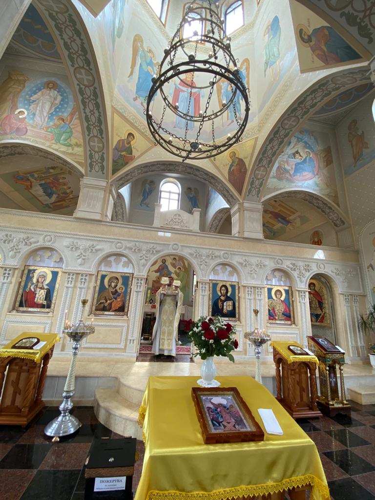 Під час Божественної літургії возносились додаткові прохання і молитва за перемогу над окупантами і мир в Україні. На завершення богослужіння протоієрей Павло Ядчишин подякував парафіянам за плідну працю для потреб воїнів-захисників України. На середину храму була винесена ікона святих рівноапостольних князя Володимира і княгині Ольги, яку воїни-захисники подарували для Свято-Георгіївського храму в знак подяки парафіянам за підримку українського війська і України.