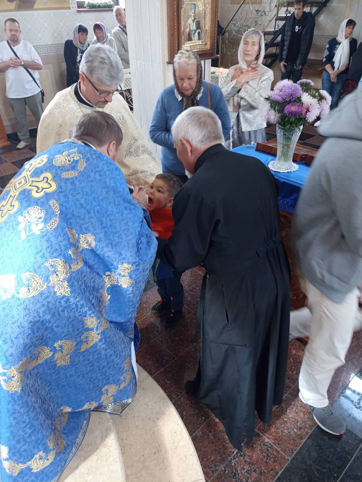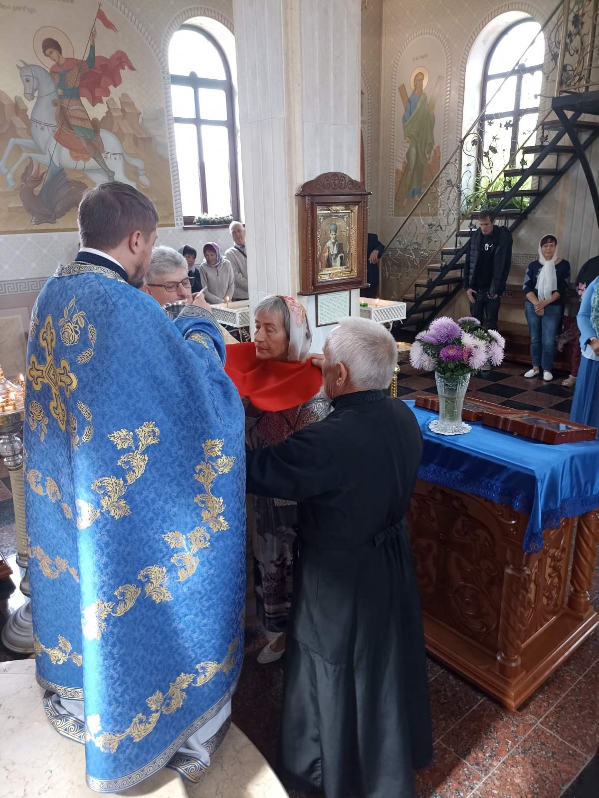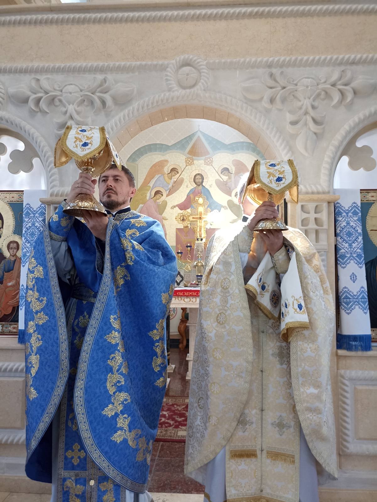 Після причастя вірних та відпусту настоятель храму протоієрей Павло Ядчишин подякував усім за спільну молитву та привітав з Днем народження парафіянку храму.