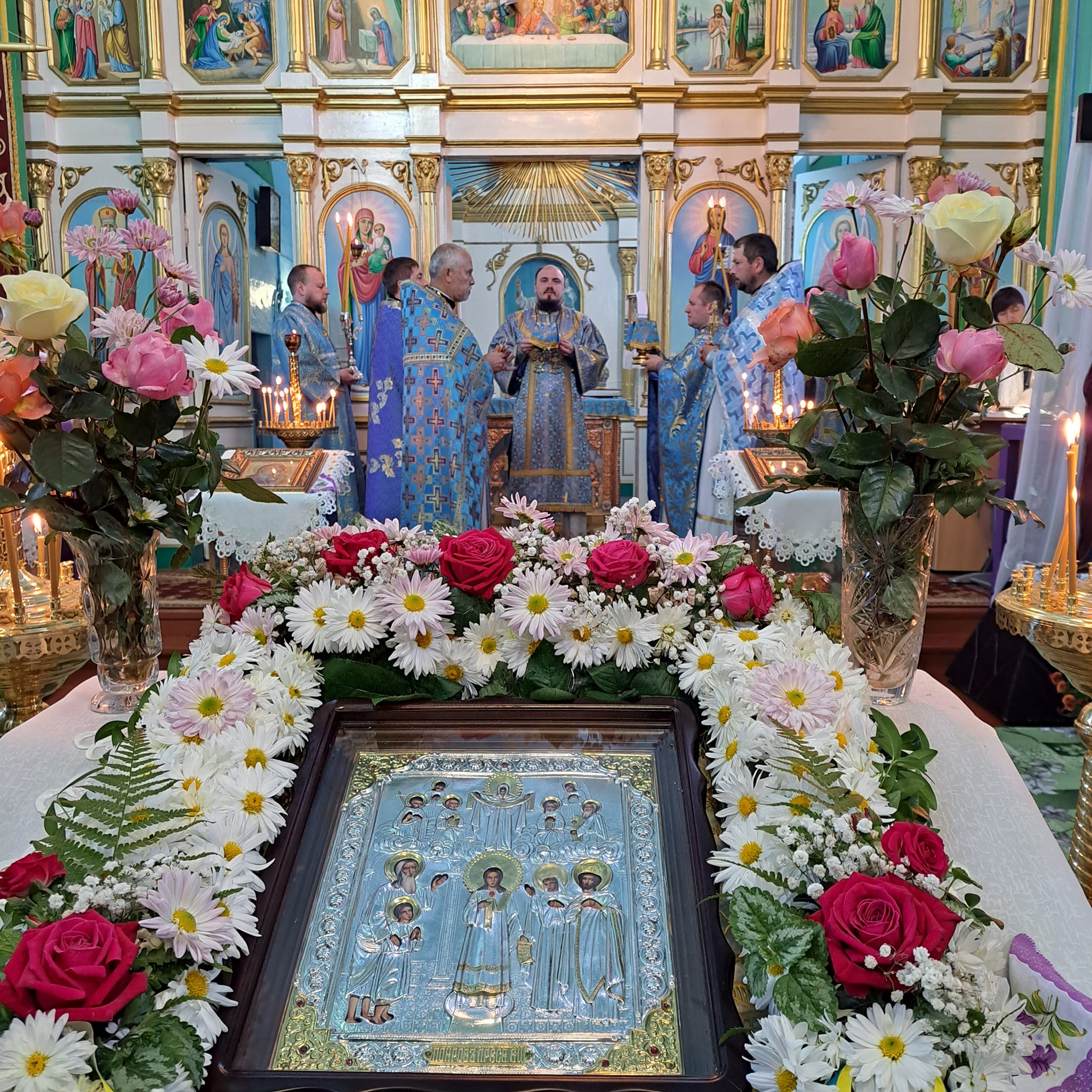 За богослужінням архіпастирю співслужив настоятель храму протоієрей Віталій Ціко, секретар єпархії, настоятель Свято-Георгіївського храму мм. Житомира протоієрей Павло Ядчишин, благочинний Житомирського району протоієрей Ігор Валович, протодиякон Василь Татарин та запрошене духовенство.