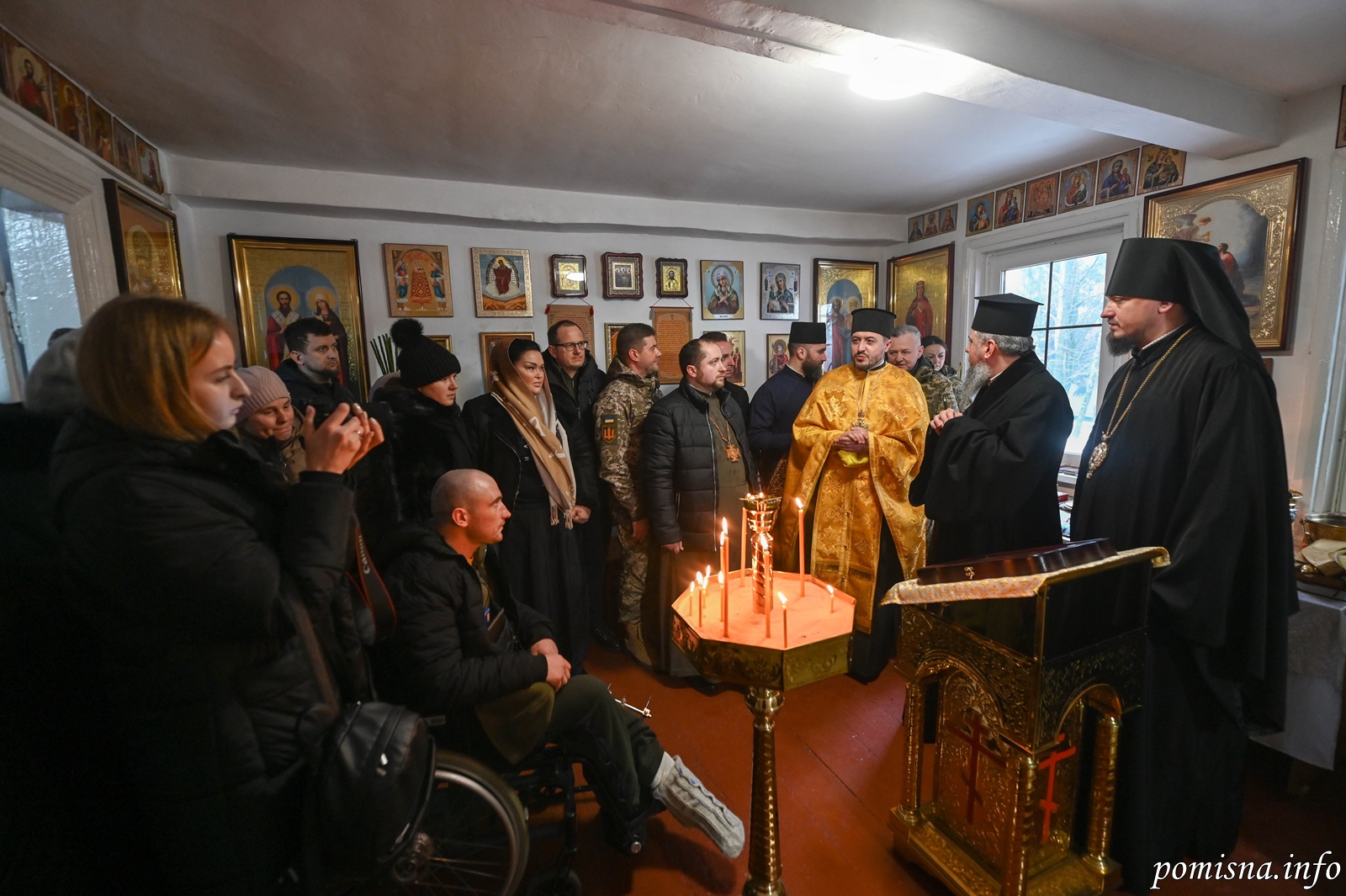 Предстоятель помолився у місцевому храмі на честь преподобного Агапіта Печерського та освятив ікони, написані на плитах від бронежилетів.