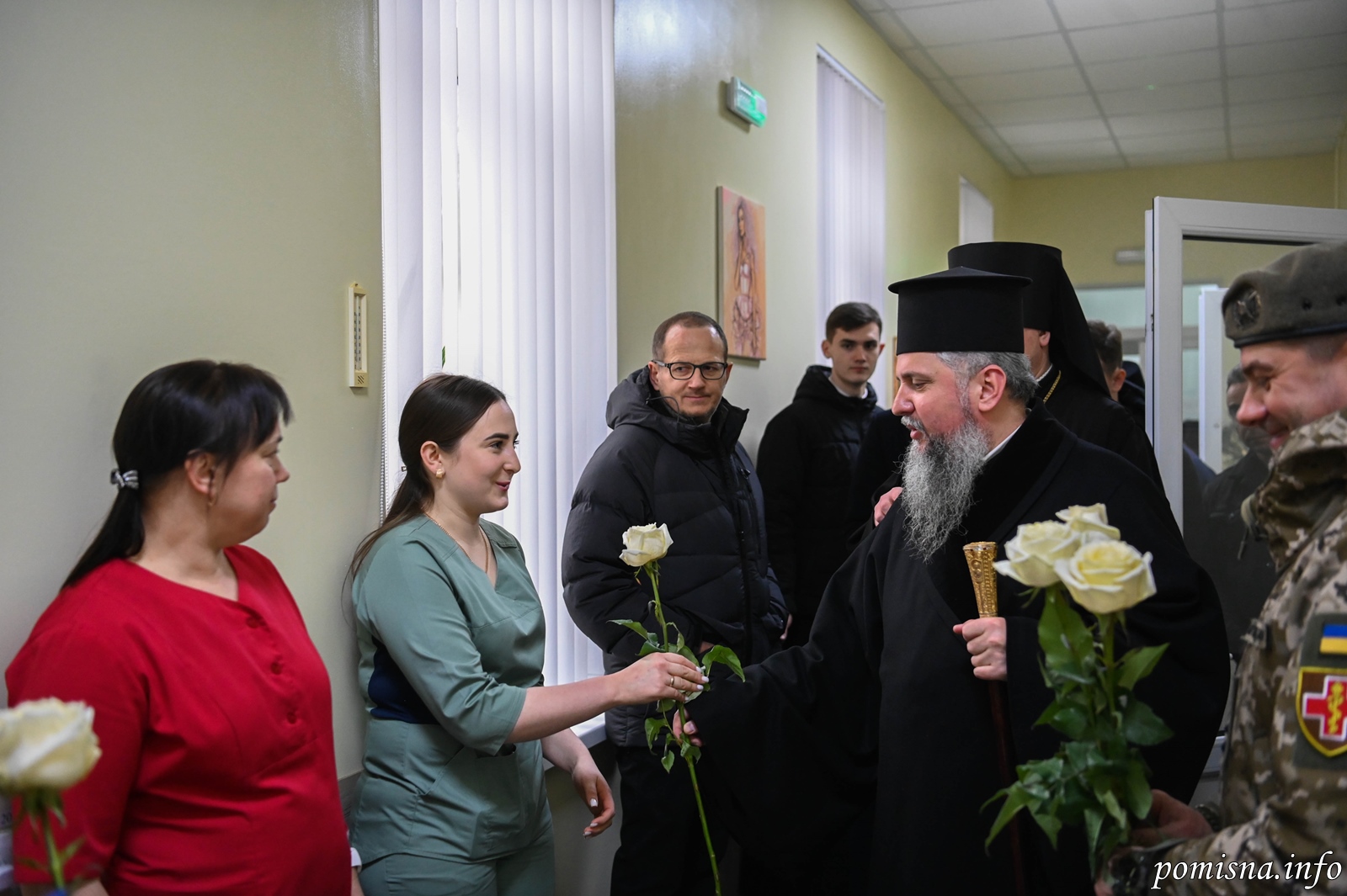 Гостей зустріли начальник військового госпіталю полковник медичної служби Олександр Серебряков, персонал закладу та капелани.