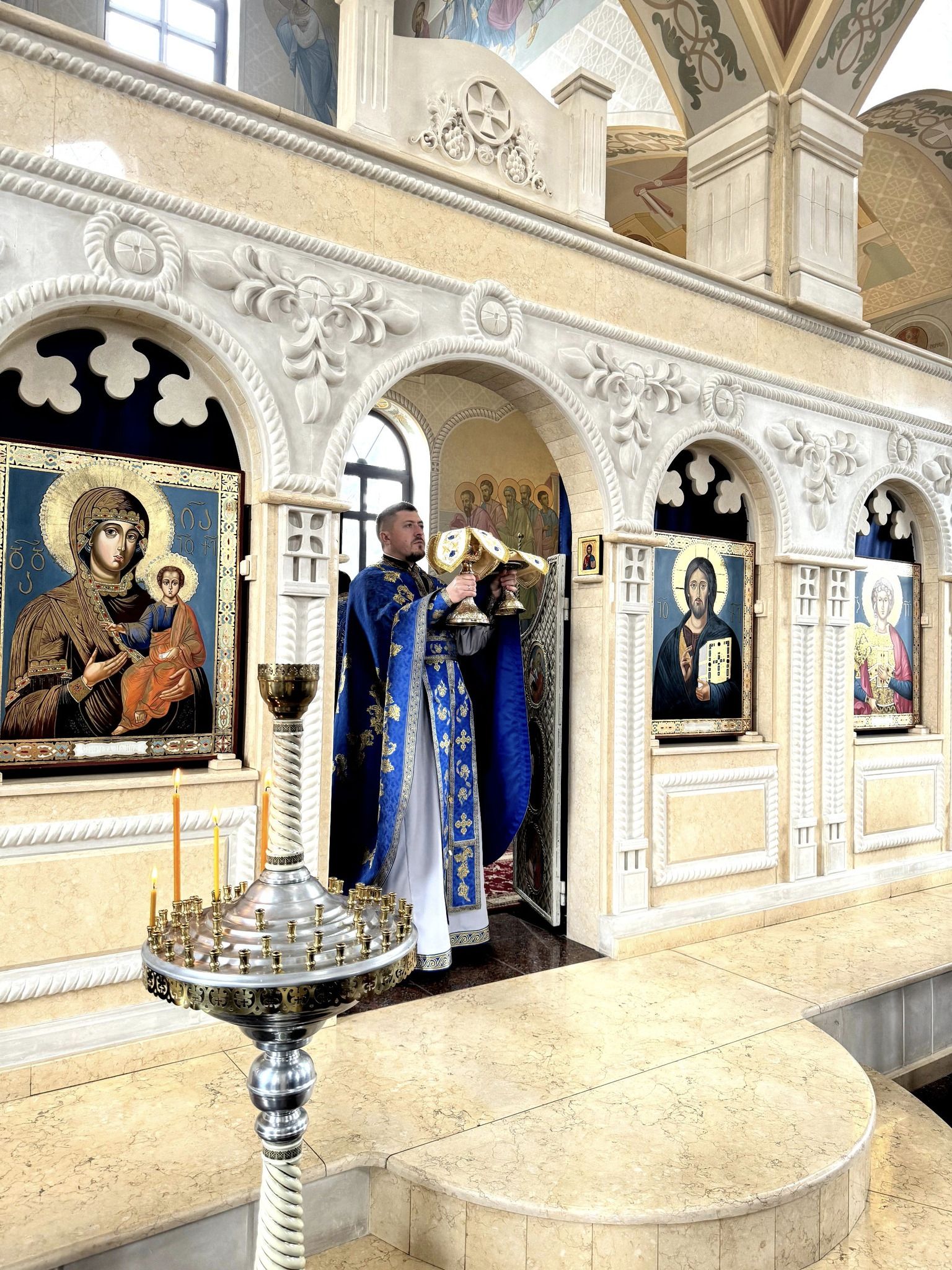 Після завершення богослужіння настоятель храму протоієрей Павло Ядчишин привітав усіх з великим святом та наголосив на важливості молитви до Пресвятої Богородиці в час великих випробувань для України.